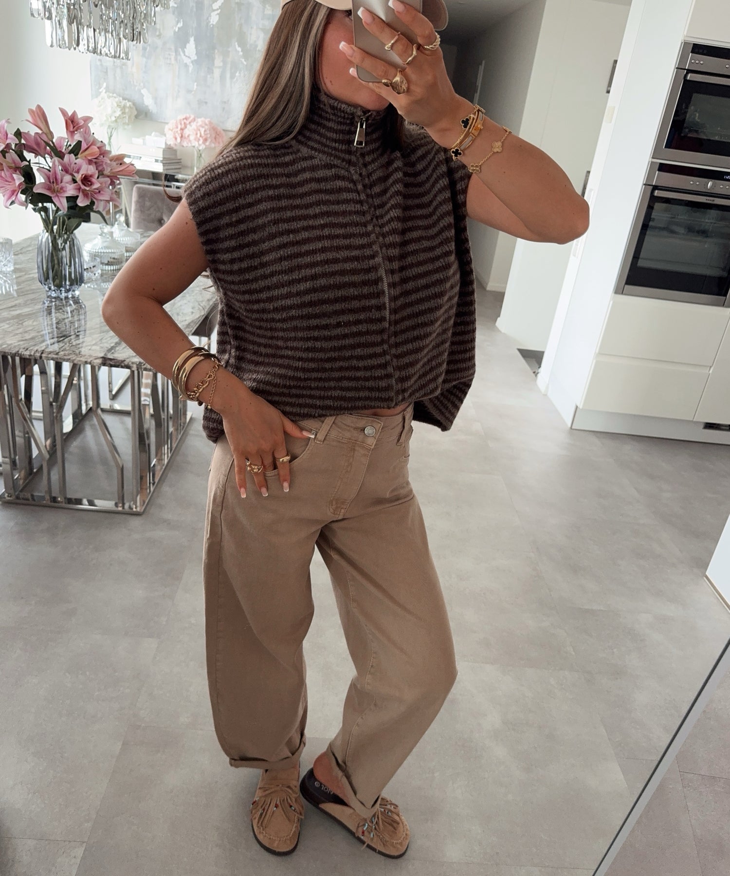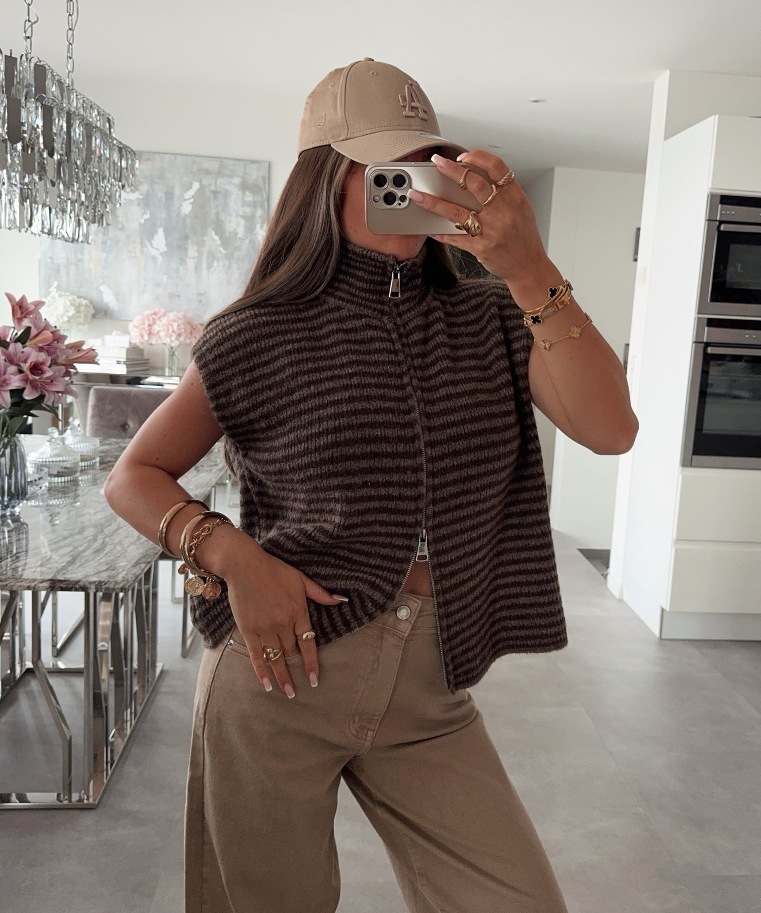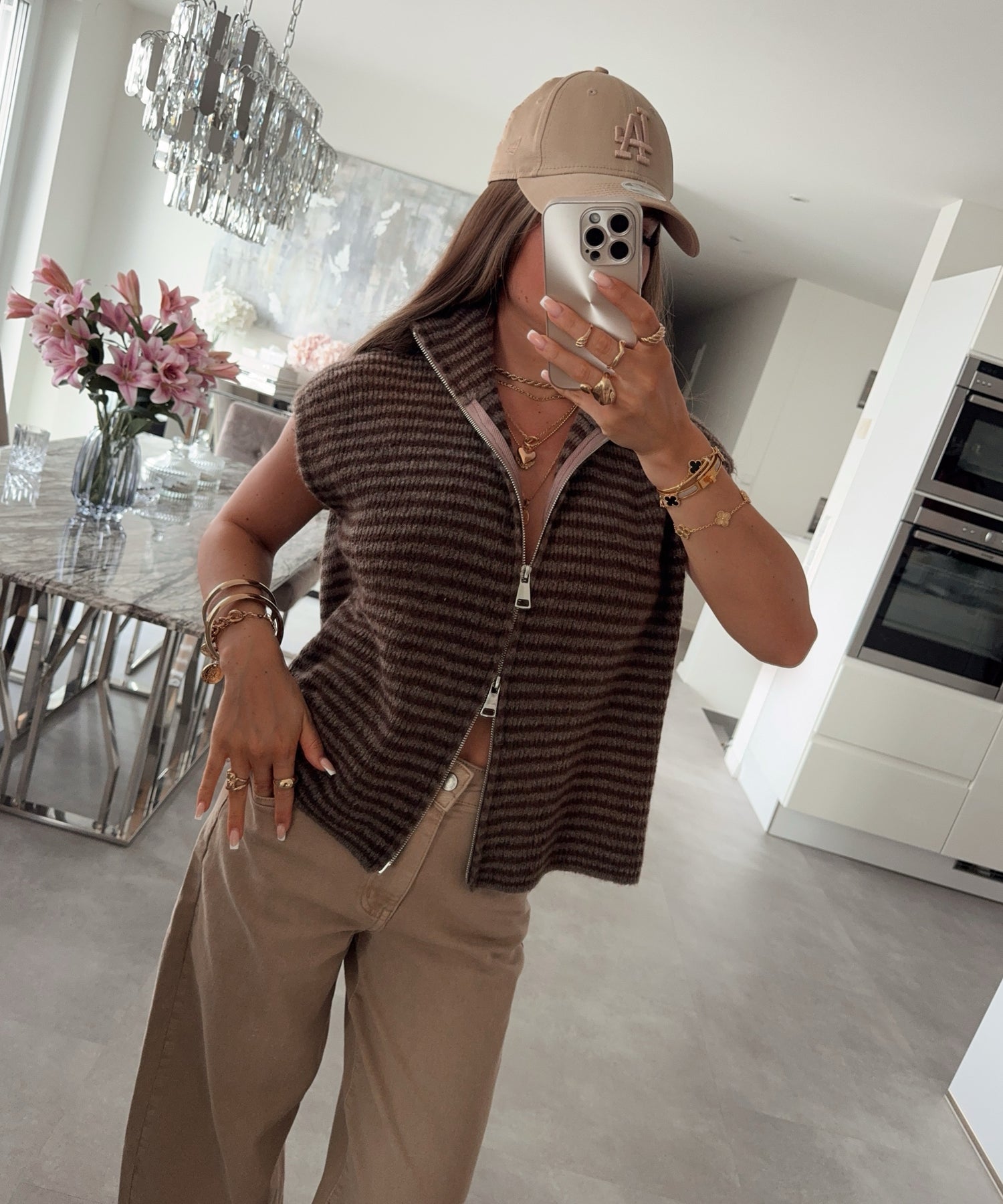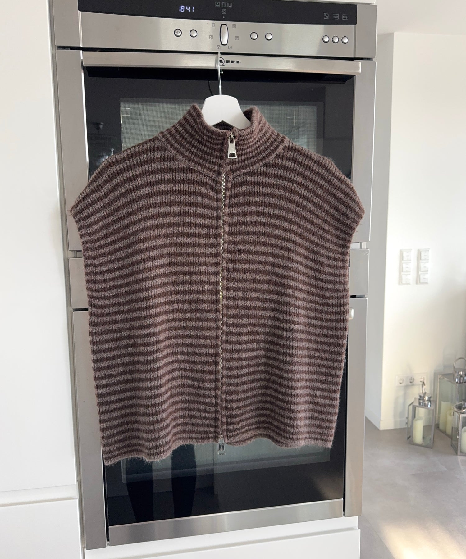 Kurzarm Strickjacke Vania Streifen Braun Taupe