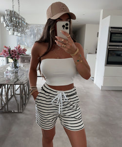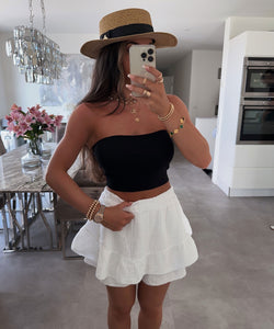 Top aus Baumwolle. Fällt normal aus. Model ist 1,65m groß und trägt Größe SM. Mit Gummieinsatz, sodass es nicht rutscht.