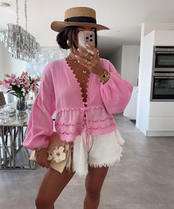 Musselin Bluse aus 100% Baumwolle. Passt den Größen XS-L.Model ist 1,65m groß.