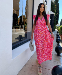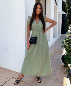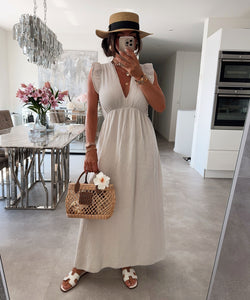 Musselin Kleid aus 100% Baumwolle. Dehnbarer Gummibund passt den Größen XS-L. Model ist 1,65m groß.