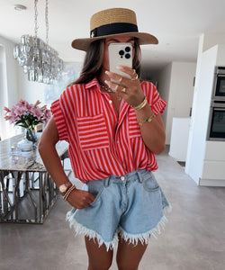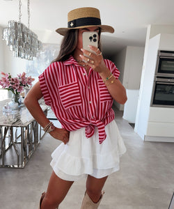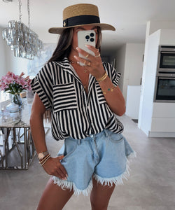 Musselin Kurzarm Hemd Elfi Streifen Schwarz