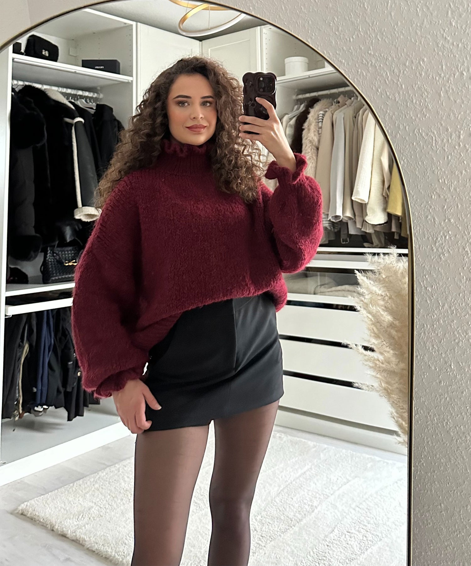 Super weicher dehnbarer Stoff mit einem besonderen Schnitt durch die Rüschen. Passt von XS-L. Model ist 1,65m groß.