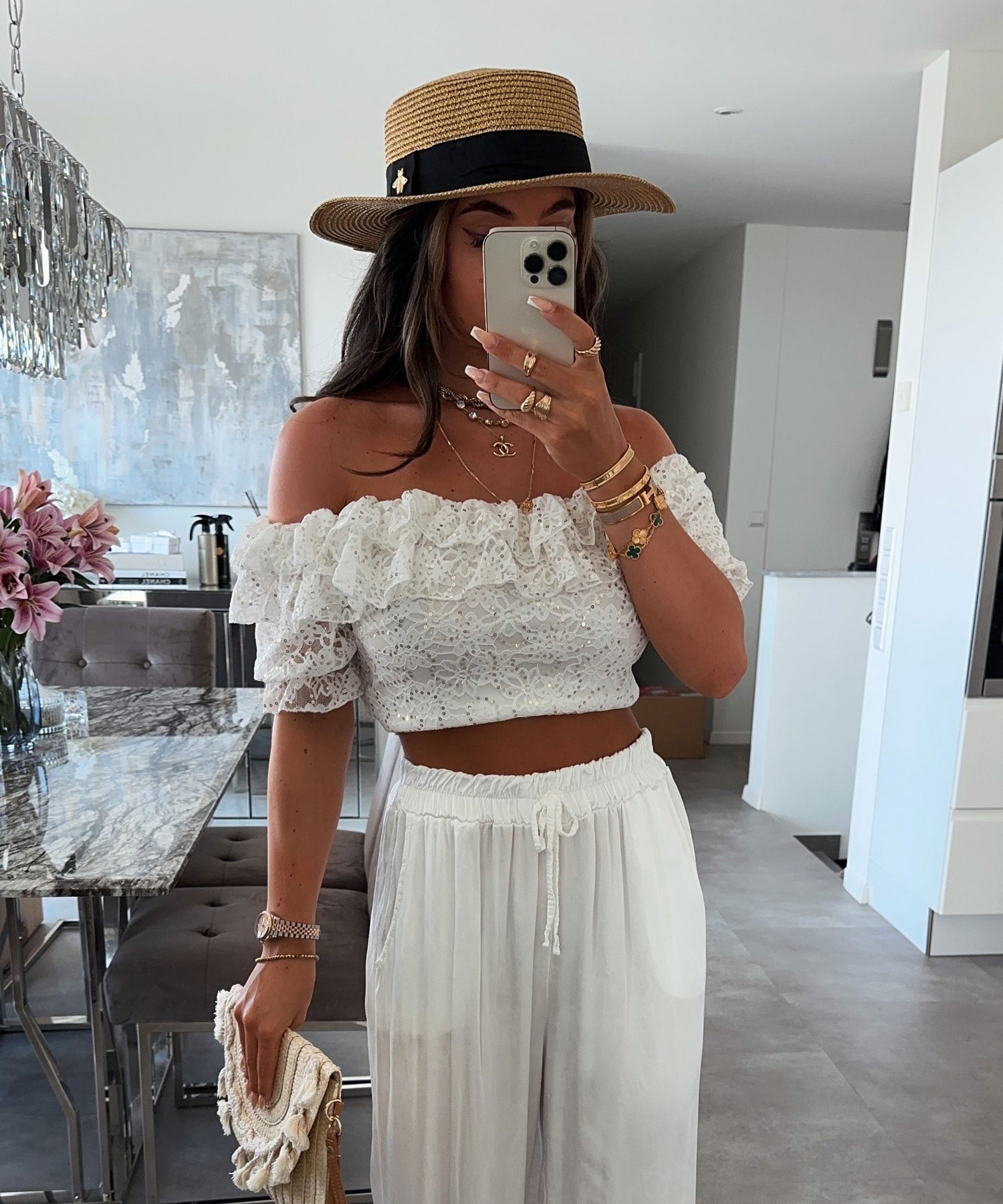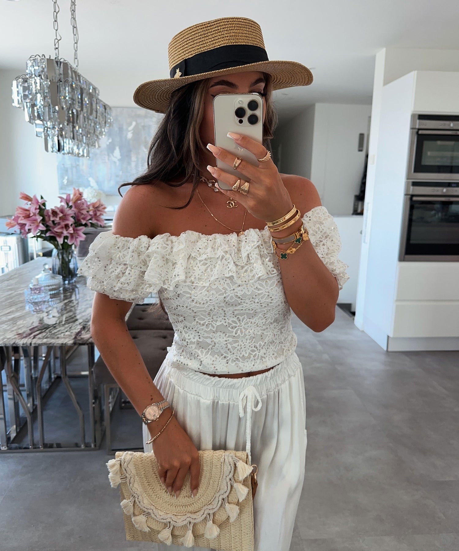 Schulterfreies T-Shirt Mireya Weiß  Ladypolitan ♡