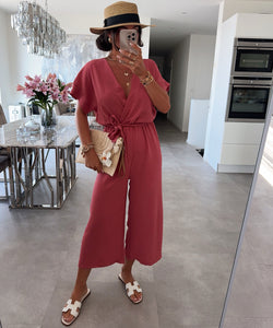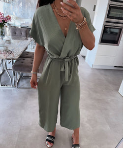 Passt XS-L. Super schöner Einteiler mit Gürtel zum Binden. Model ist 1,65m groß.