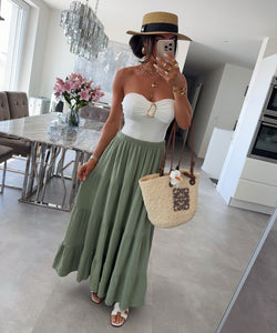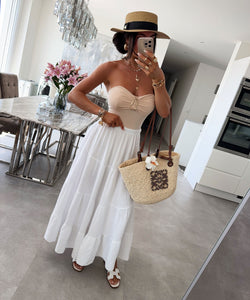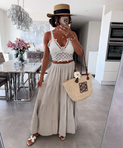 Rock aus 100% Baumwolle. Dehnbarer Gummibund. Passt den Größen XS-L. Model ist 1,65m groß.
