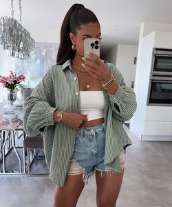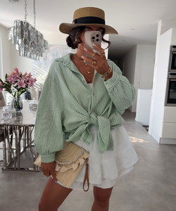 Beautiful oversize muslin blouse made of 100% cotton. One size fits XS-XL. Model is 1.65m.