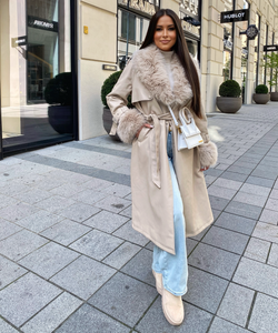 Ledermantel Hillary mit Felldetails Braun Ladypolitan ♡