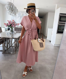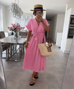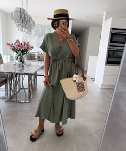 Passt XS-L. Super schönes Kleid mit Gürtel zum Binden. Model ist 1,65m groß.