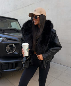 Super nice parka with faux fur and tie belt to adjust the waist. Keeps you particularly warm and is therefore ideal for winter. Model one is 1.65m tall and wears size S/36. Model two is 1.69m and wears size S/36. Turns out normal. With press studs and wind protection on the sleeves.