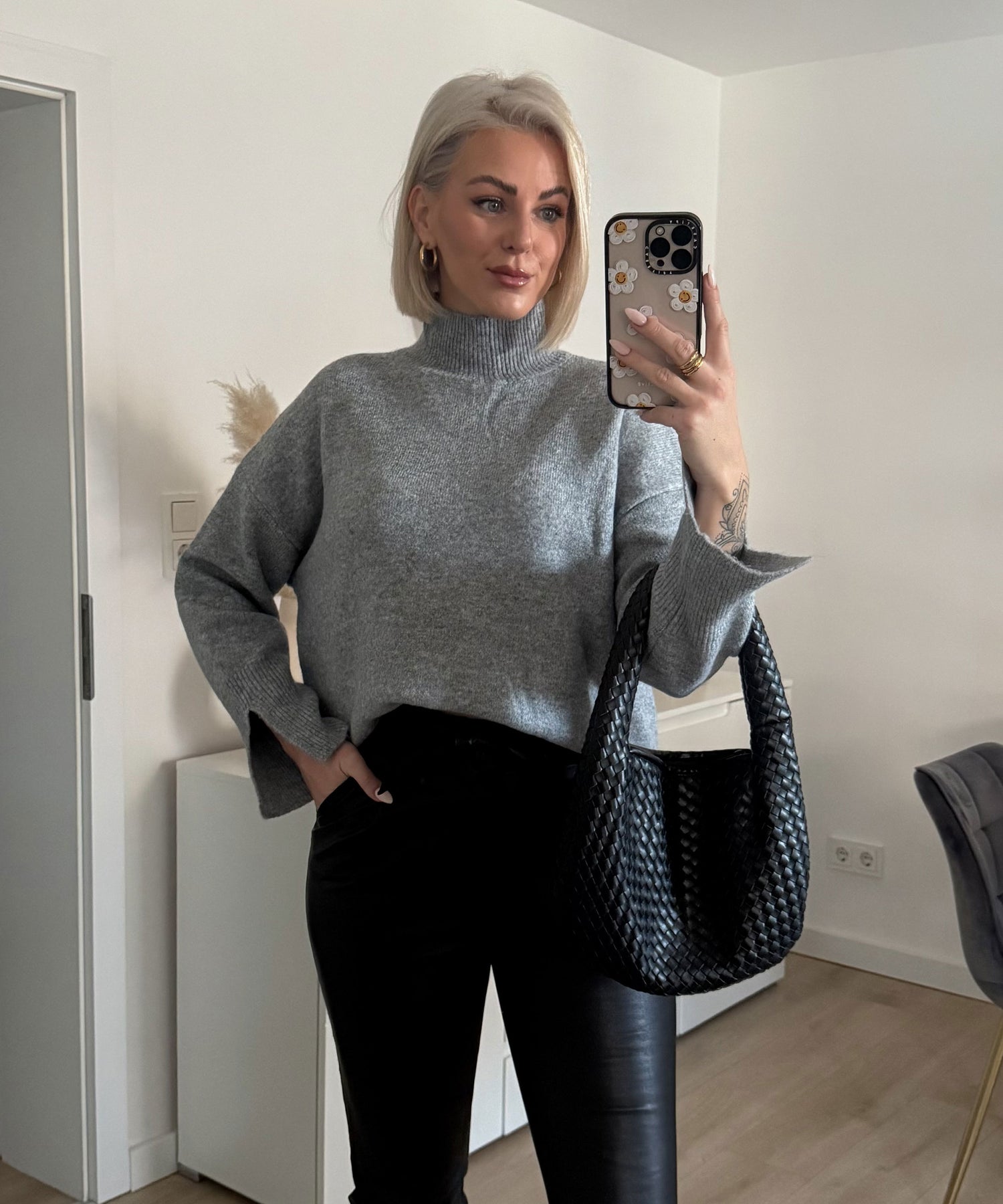 Extrem weicher Strickpullover. Model ist 1,65m groß. Passt den Größen XS-XL. Passt perfekt zu unserem Rock Alaya.
