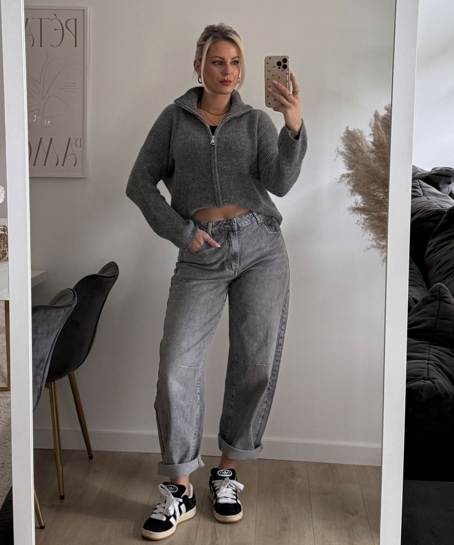 Fällt normal aus. Enthält viel Stretch und ist daher super bequem. Model ist 1,65m groß und trägt Größe S. Model zwei ist 1,68m und trägt Größe S. Kann man normal oder hochgekrempelt getragen werden.