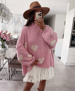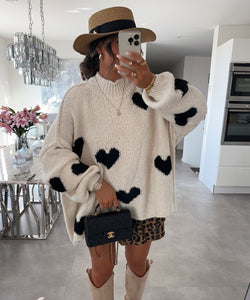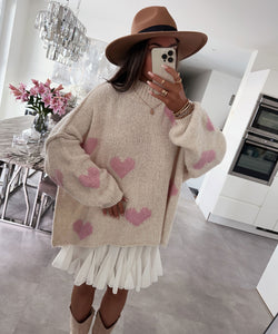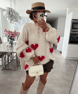 Oversize Pullover Nata Herz Beige Rot Ladypolitan ♡