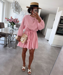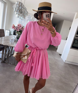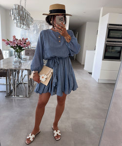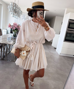 Passt den Größen XS-XXL, da es ganz locker geschnitten ist und nur durch den Gürtel tailliert wird. Model ist 1,69m groß.