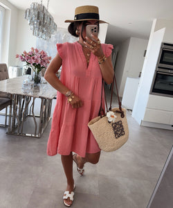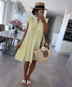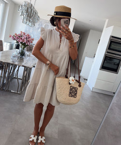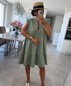 Musselin Kleid aus 100% Baumwolle. Passt den Größen XS-XL. Model ist 1,65m groß.