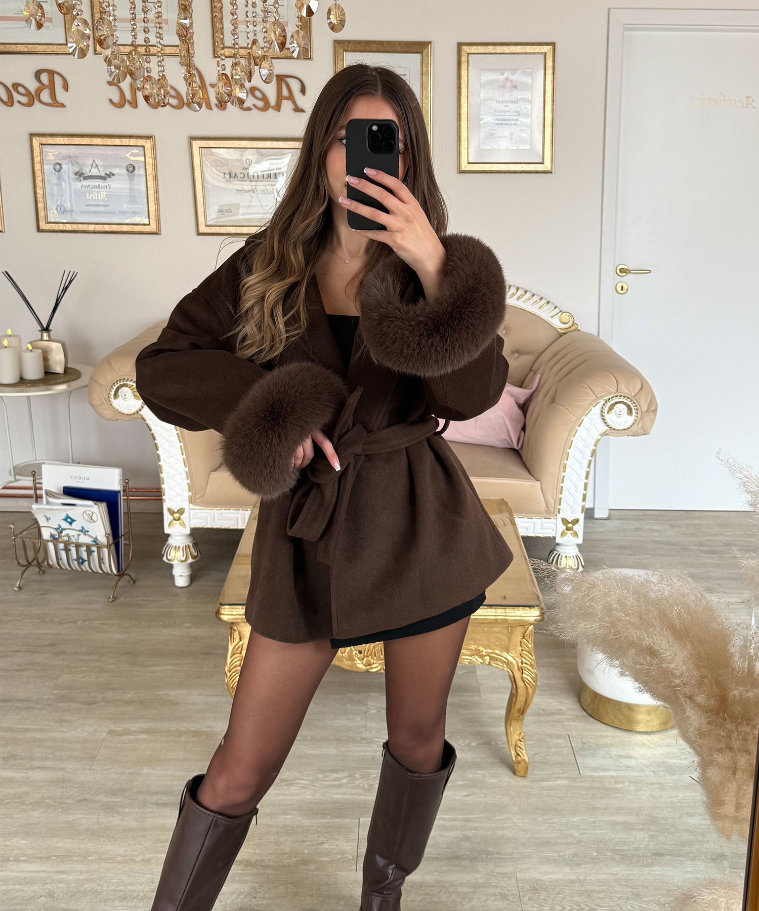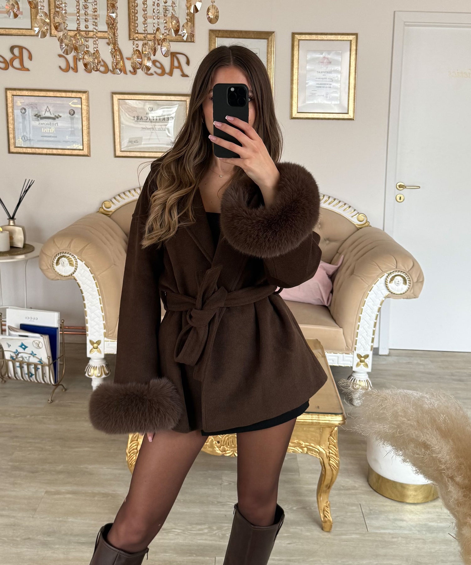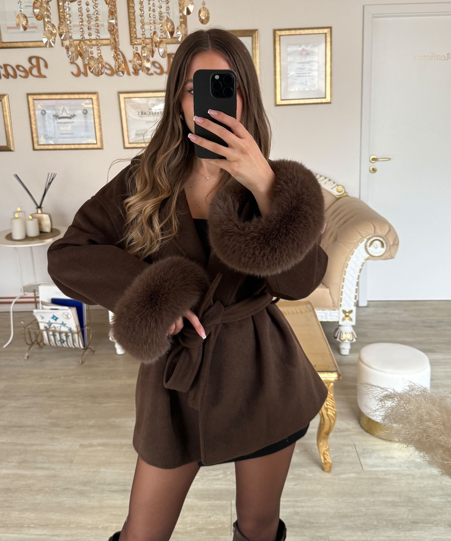 Jacke mit Felldetails Loona Dunkelbraun Ladypolitan ♡