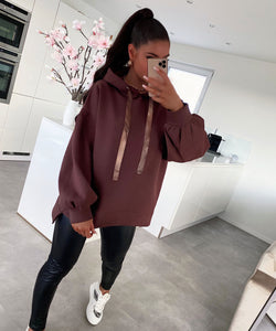 Super weicher, gefütterter Hoodie mit Ballonärmeln. Einheitsgröße passt XS-XL. Model eins ist 1.65m. Model zwei ist 1.69m.
