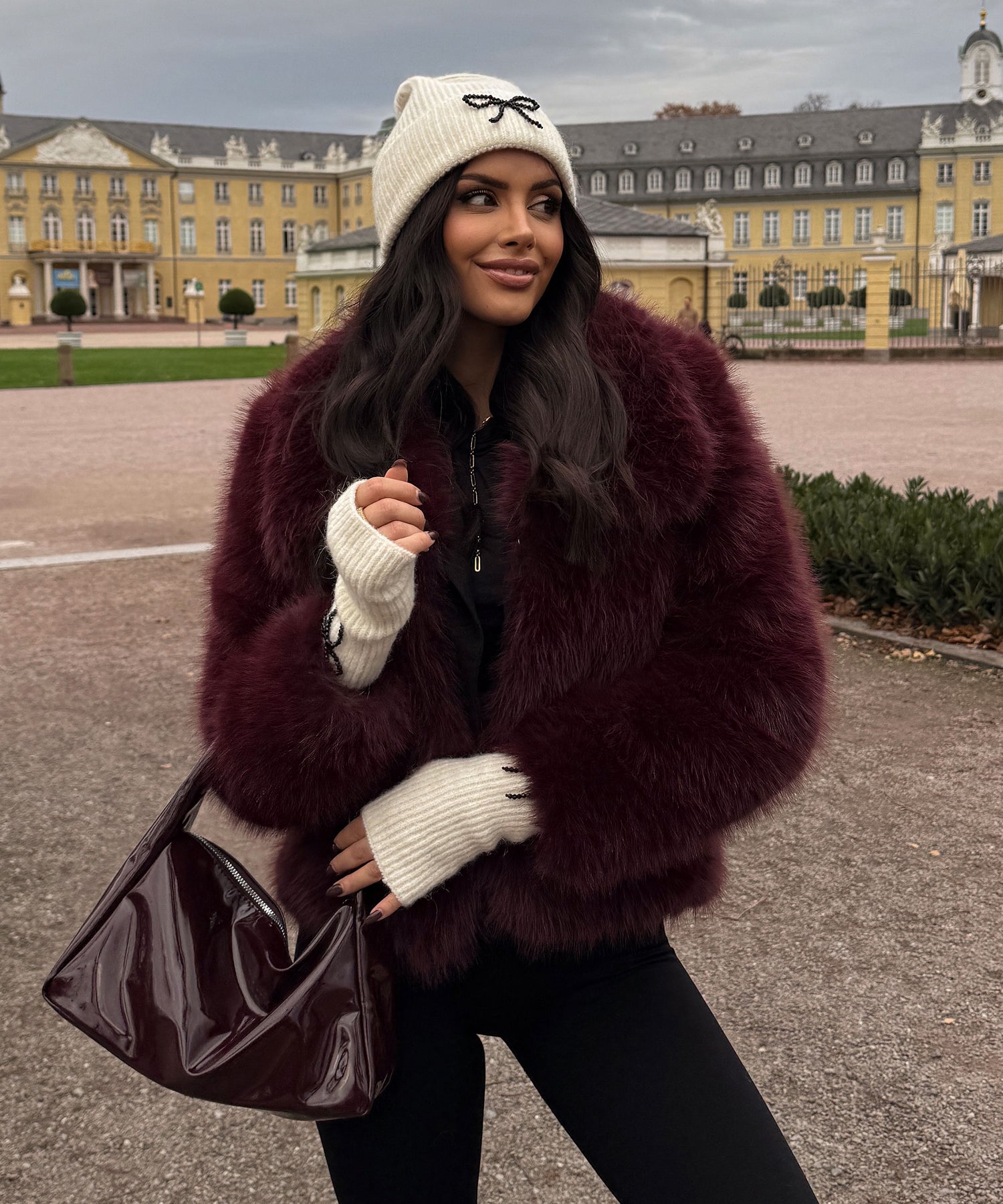 Fällt normal aus ihr könnt aber für einen lockeren Schnitt auch eine Größe größer bestellen☺️ Super weiche Kunstpelzjacke.