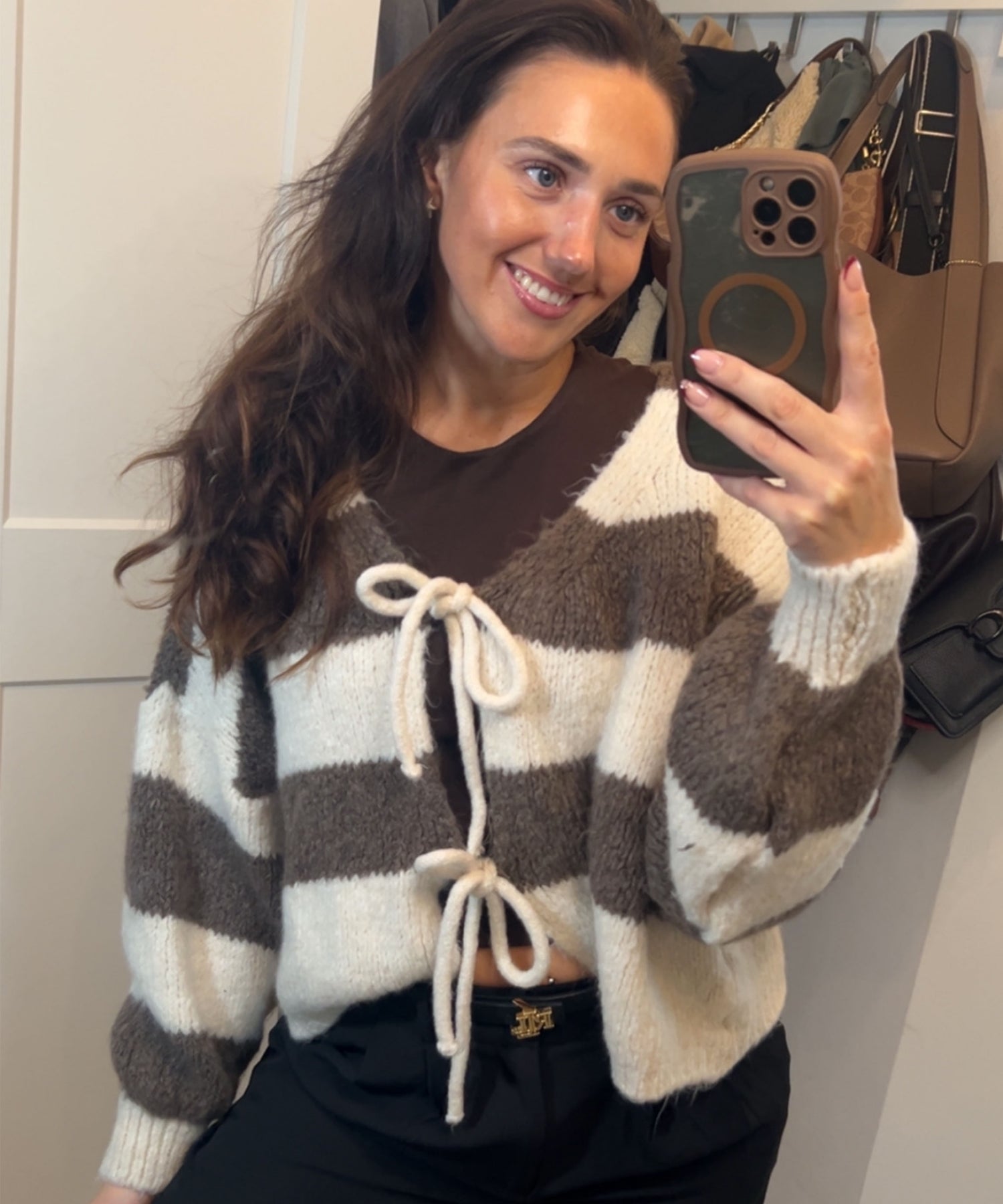 Cardigan Schleife Fia Streifen Beige Braun Ladypolitan ♡