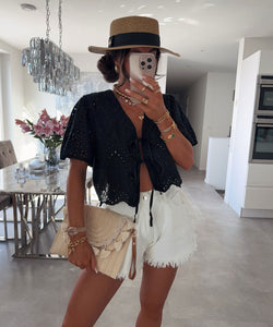 Bluse aus 100% Baumwolle. Einheitsgröße passt den Größen XS-L. Model ist 1,65m groß.