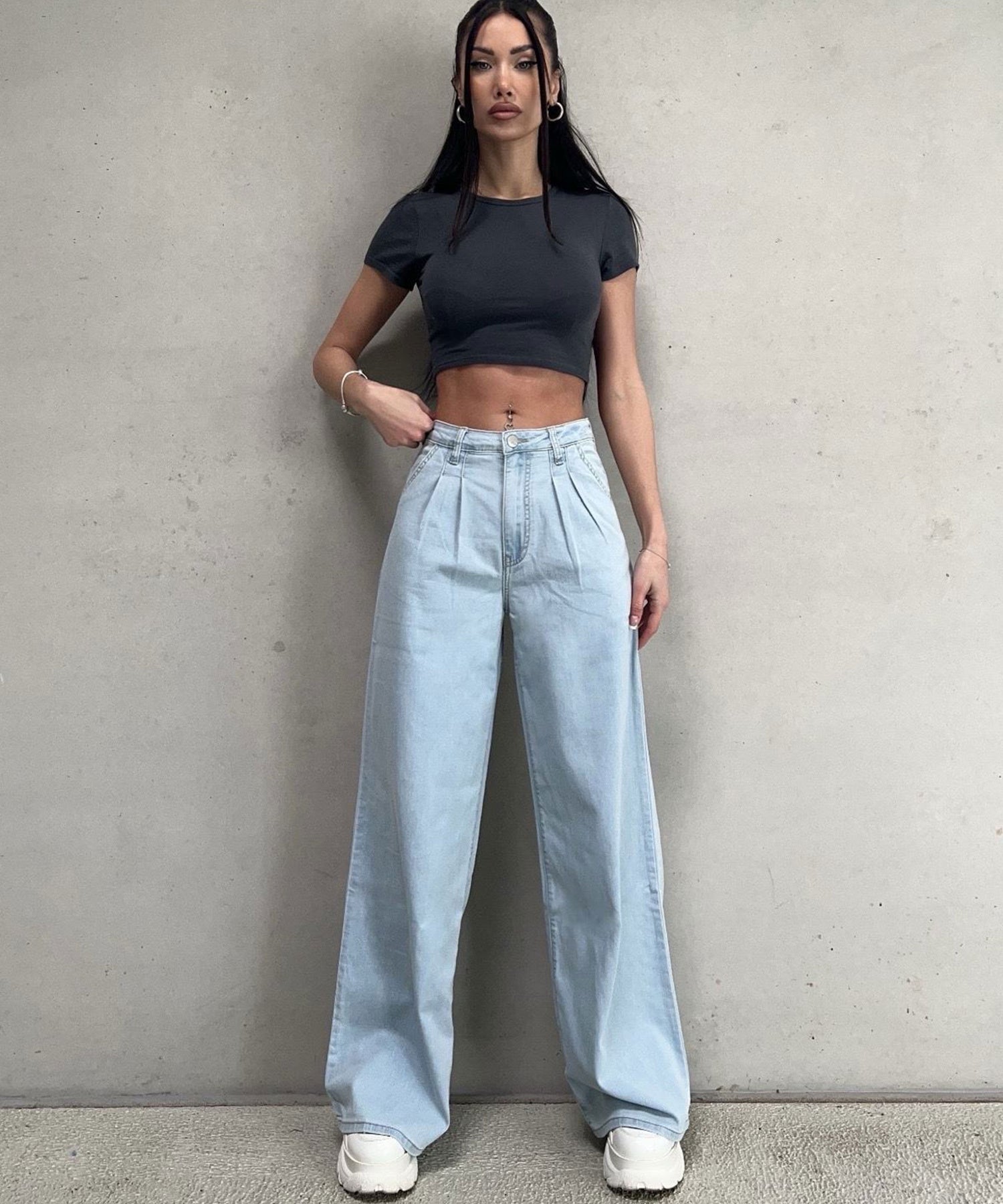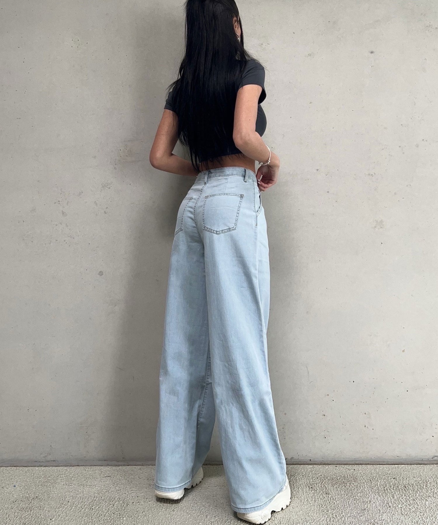 Fällt normal aus und enthält viel Stretch. Daher ist sie super bequem. Aus einem leichten Jeansstoff perfekt für den Frühling.