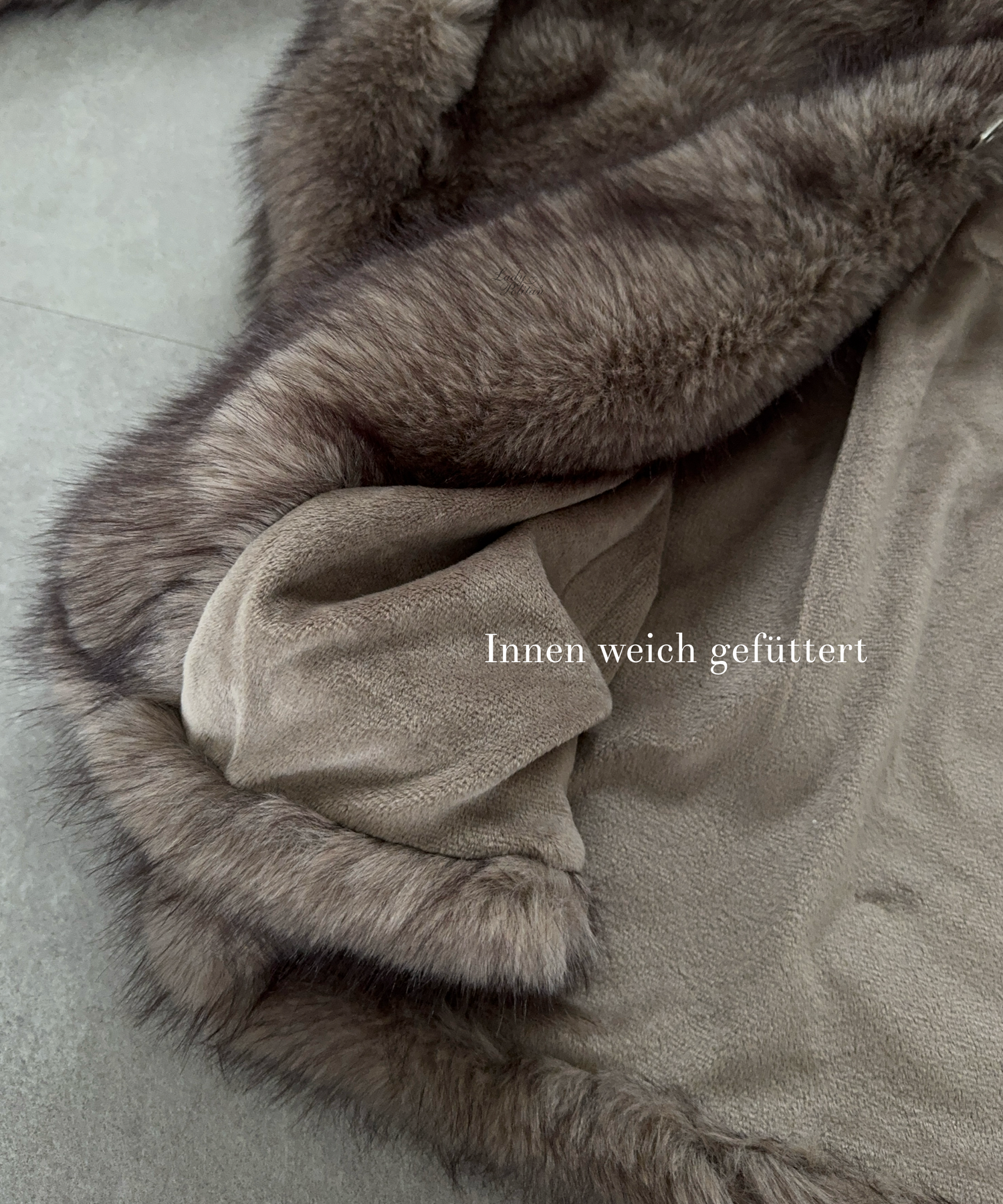 Hält sehr warm. Innen weich gefüttert. Fällt normal aus. Model ist 1,69m und trägt Größe SM. Gesamtlänge ca. 90cm.