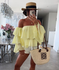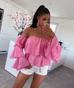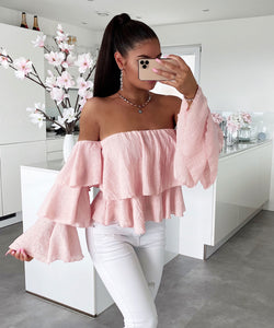 Luftige off shoulder Bluse. Durch mehrere Lagen ist sie blickdicht. Sehr leichter, angenehmer Stoff. Einheitsgröße passt XS-L. Model ist 1.69m.