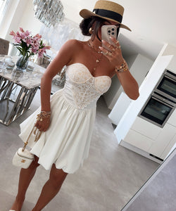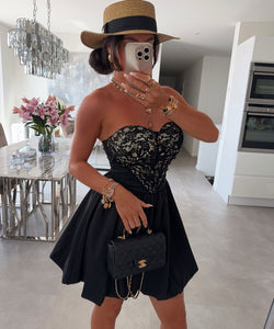 Fällt normal aus. Mit Brustpads für ein schönes Dekolleté. Model ist 1,65m groß und trägt Größe SM. Länge ca. 70cm.