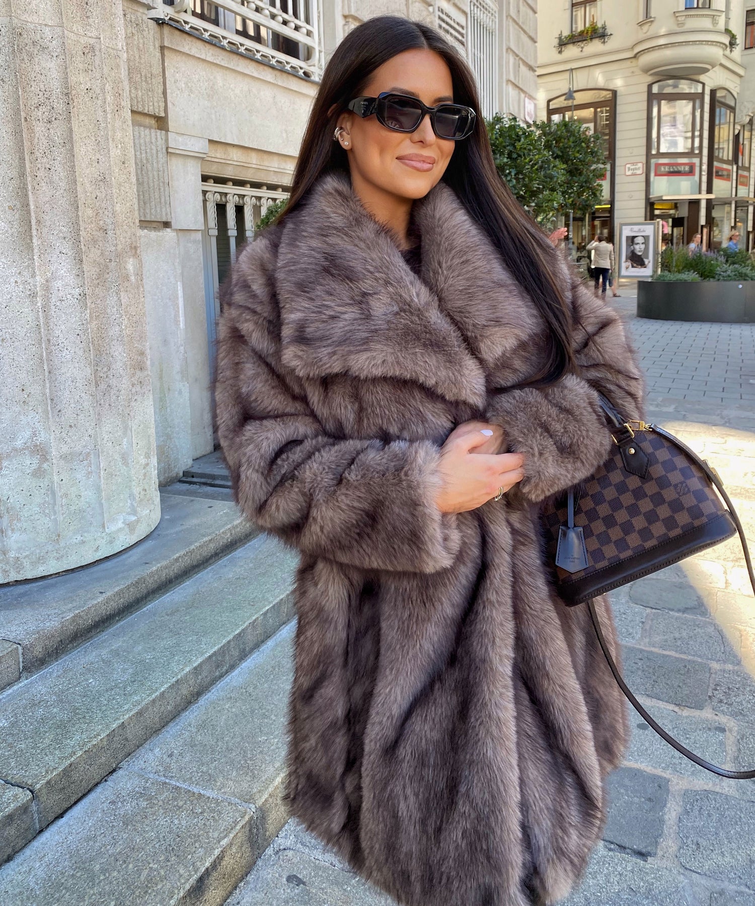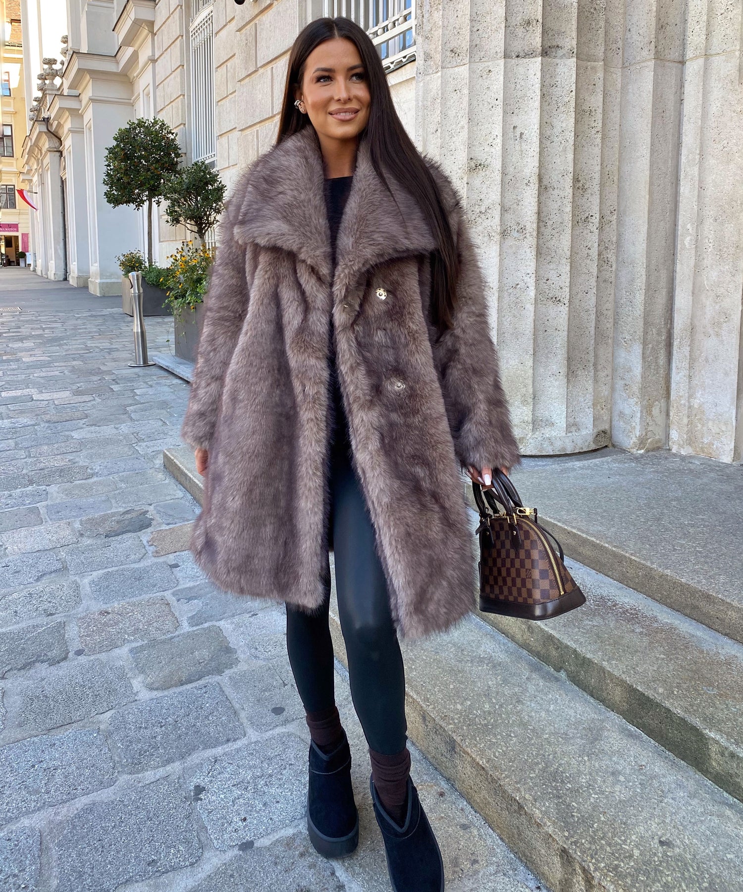 Hält sehr warm. Fällt normal aus. Model ist 1,69m und trägt Größe SM.