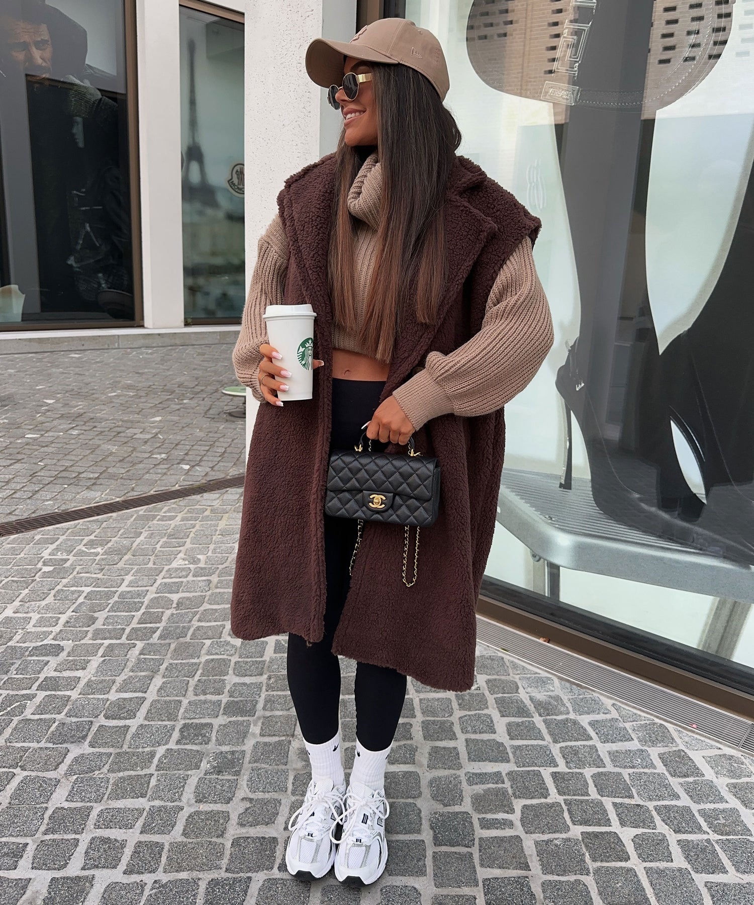 Super weiche und warme Teddyweste. Passt den Größen XS-XXL. Model eins ist 1,69m groß.