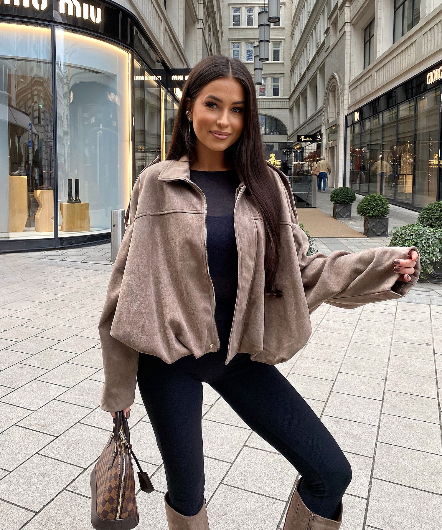 Wildlederoptik Jacke Linu Taupe Ladypolitan ♡