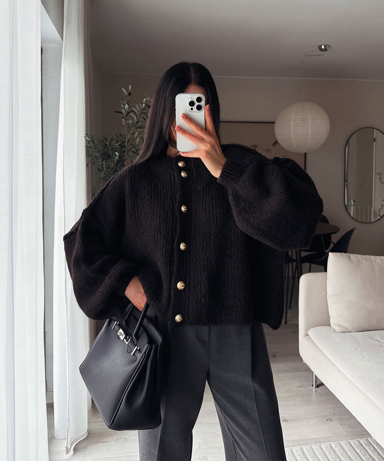 Oversize Strickjacke Jalsi Kurz Schwarz