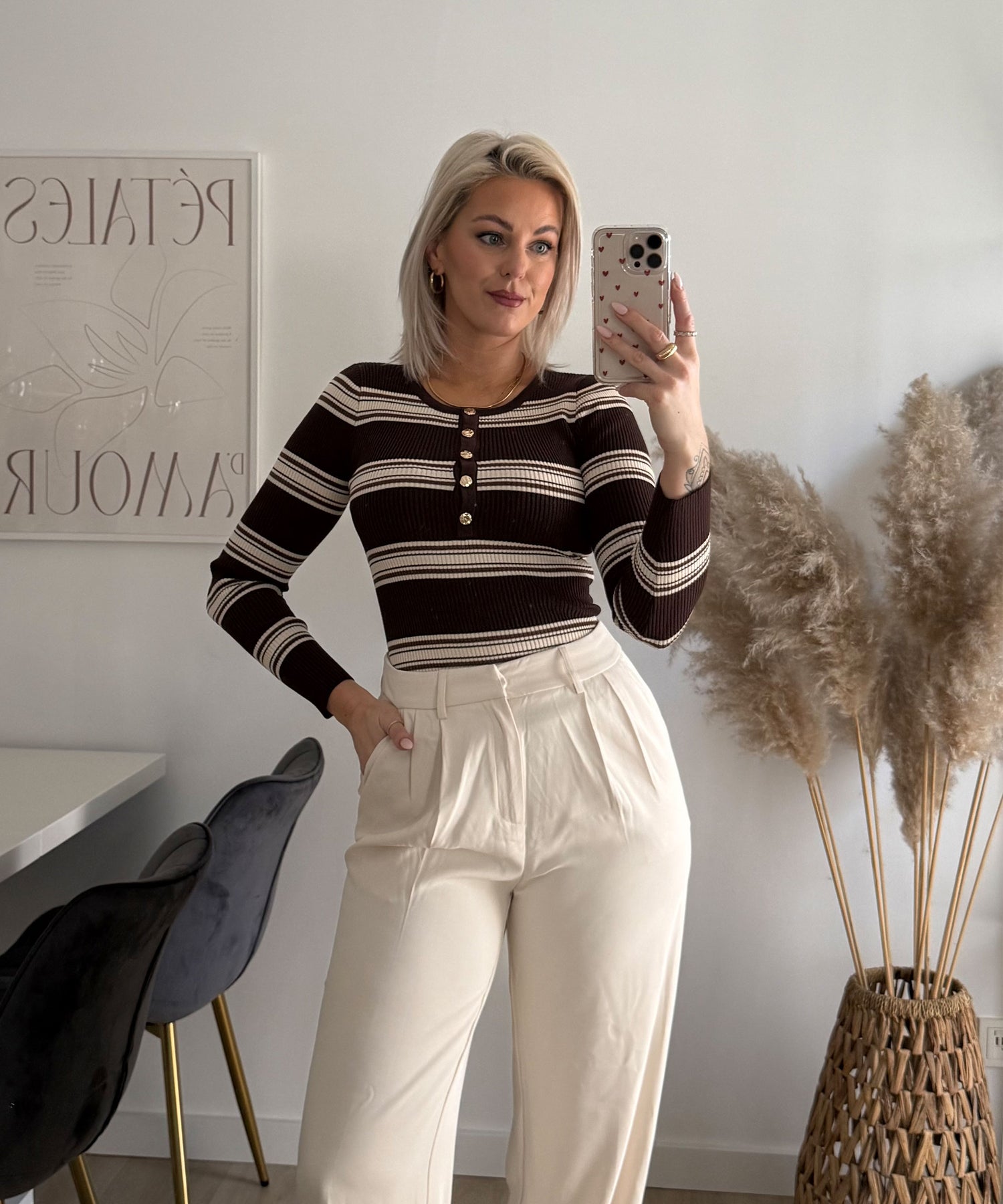Langarmbody Luvia Streifen Braun Beige Ladypolitan ♡