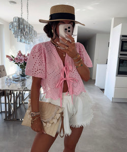 Bluse aus 100% Baumwolle. Einheitsgröße passt den Größen XS-L. Model ist 1,65m groß.