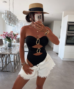 Fällt normal aus.Mit Brustpads. Dehnbarer Stoff. Lässt sich unten öffnen. Model ist 1,65m groß und trägt Größe SM.