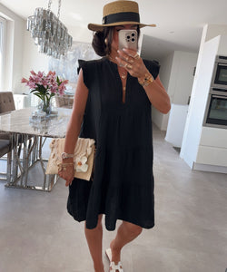 Musselin Kleid aus 100% Baumwolle. Passt den Größen XS-XL. Model ist 1,65m groß.