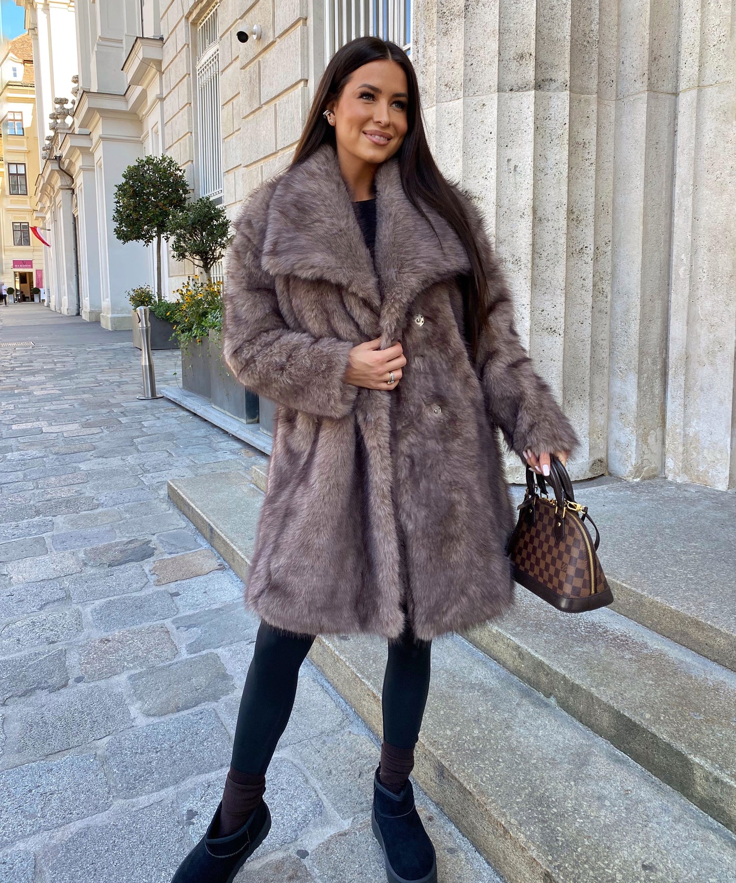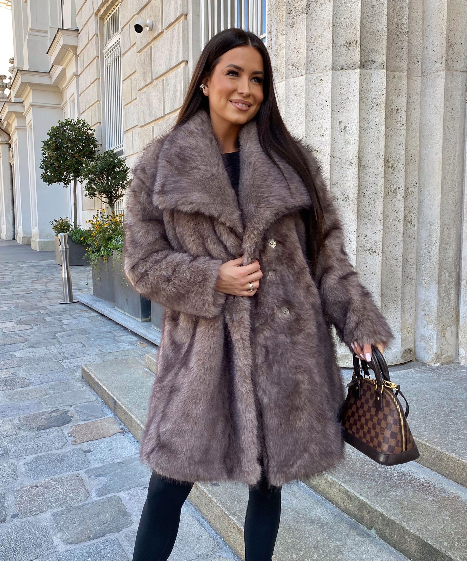 Hält sehr warm. Fällt normal aus. Model ist 1,69m und trägt Größe SM.
