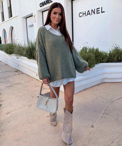 Super weicher und kuscheliger Pullover mit V-Ausschnitt. Model ist 1,65m groß.