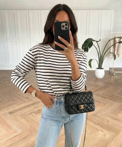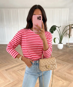 Pullover aus 100% Baumwolle. Model ist 1,65m und trägt Größe SM.