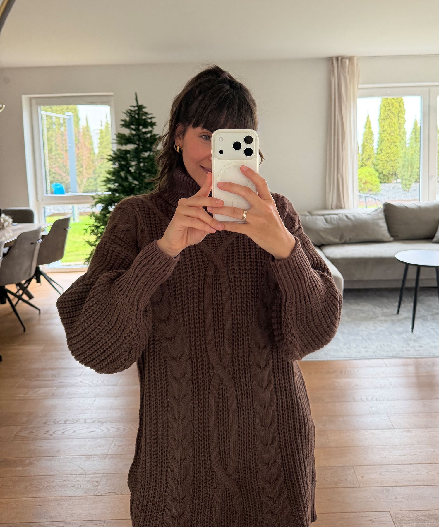 Weiches dehnbares Strickkleid. Passt den Größen XS-L. Model eins ist 1,69m. Model zwei ist 1,65m.