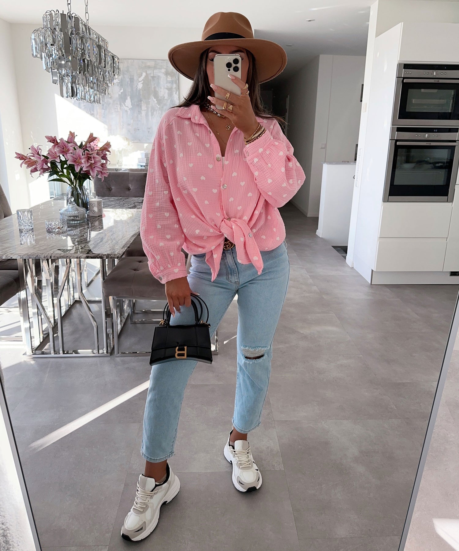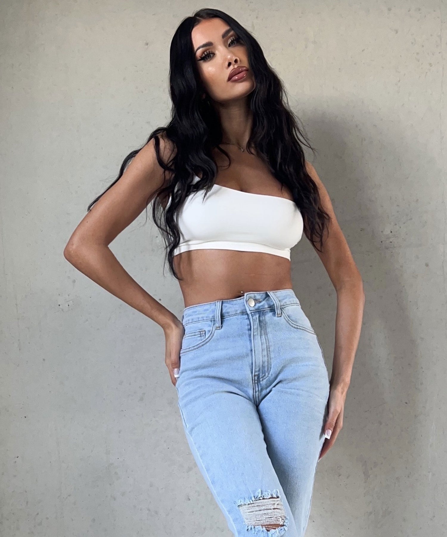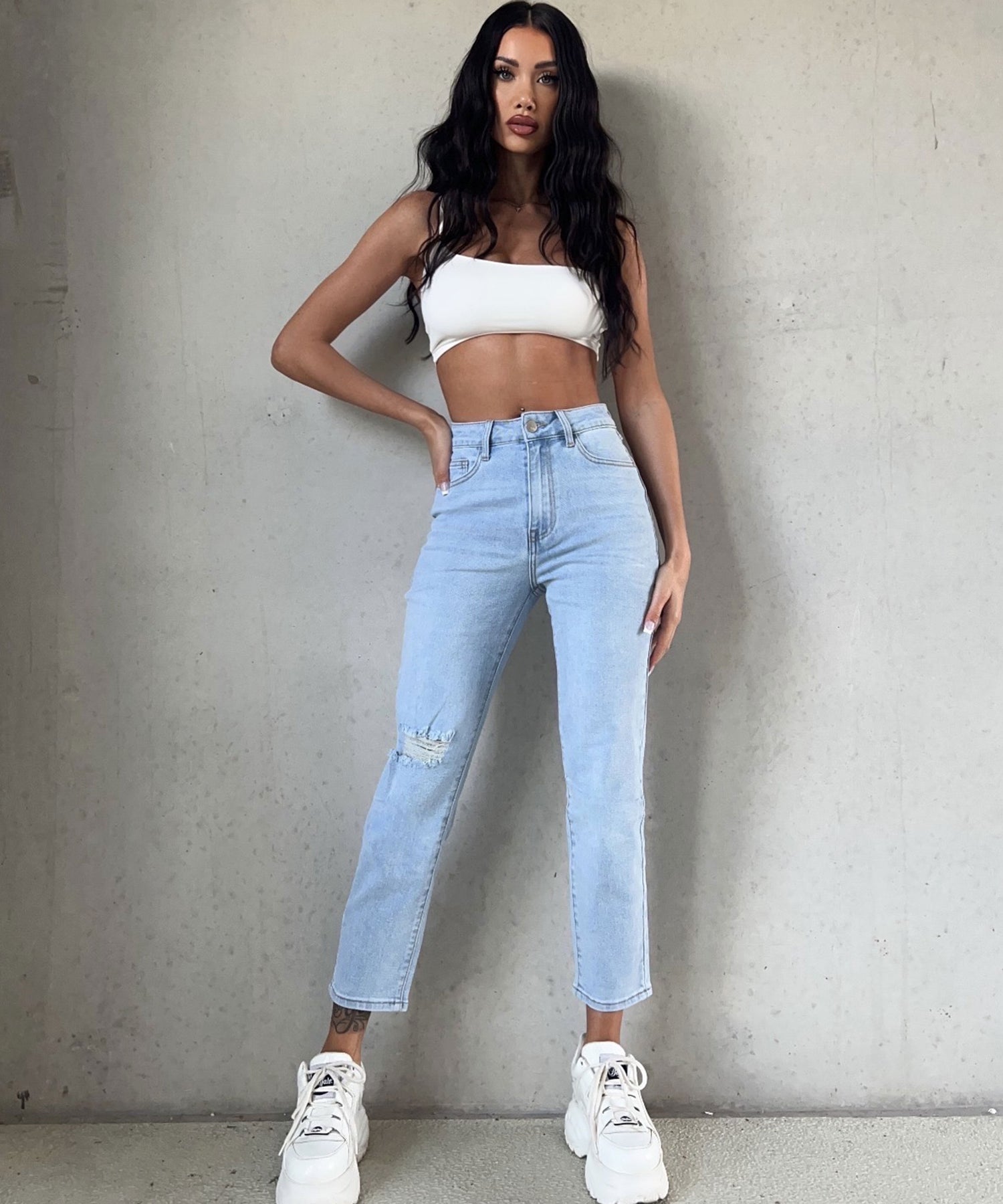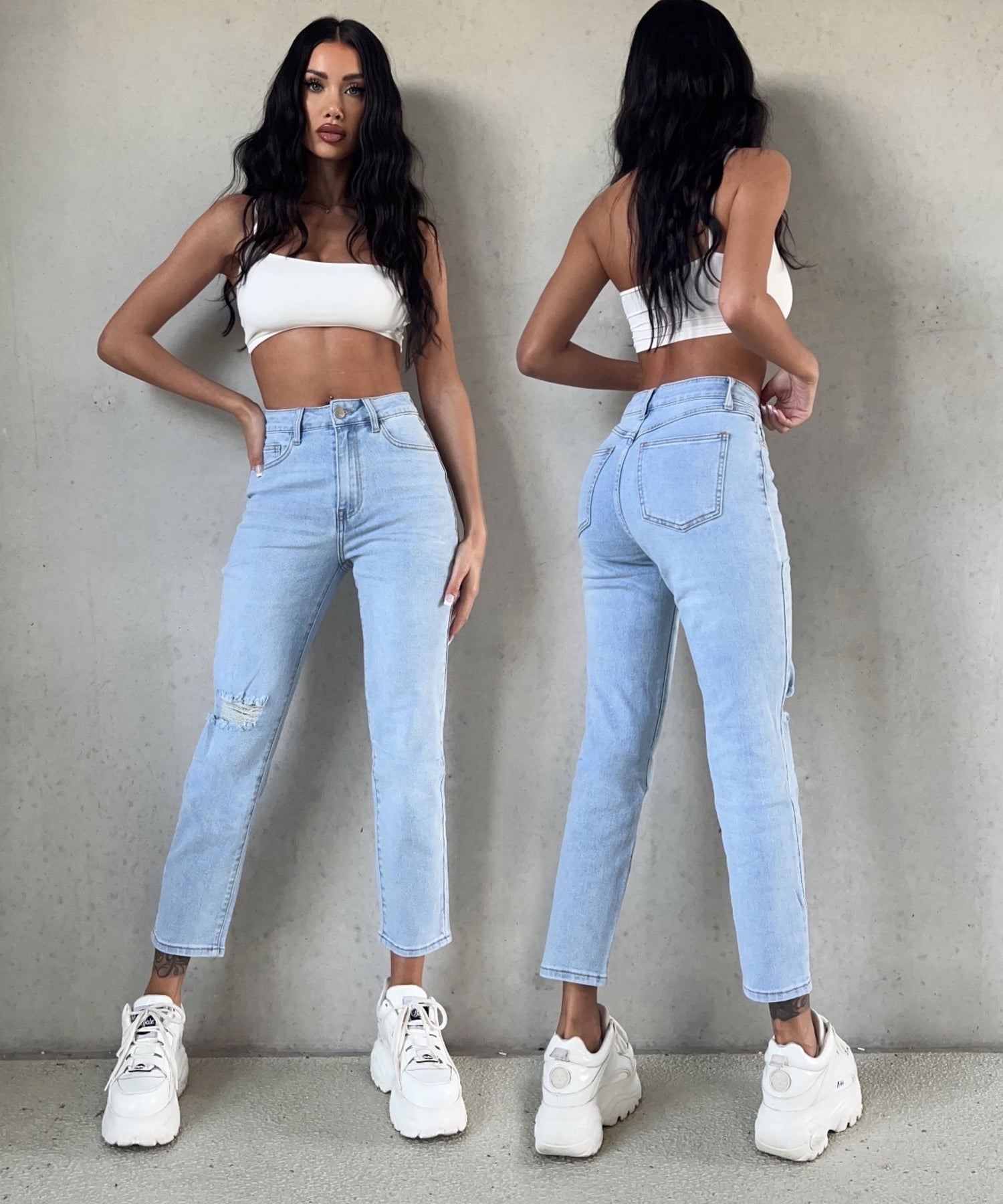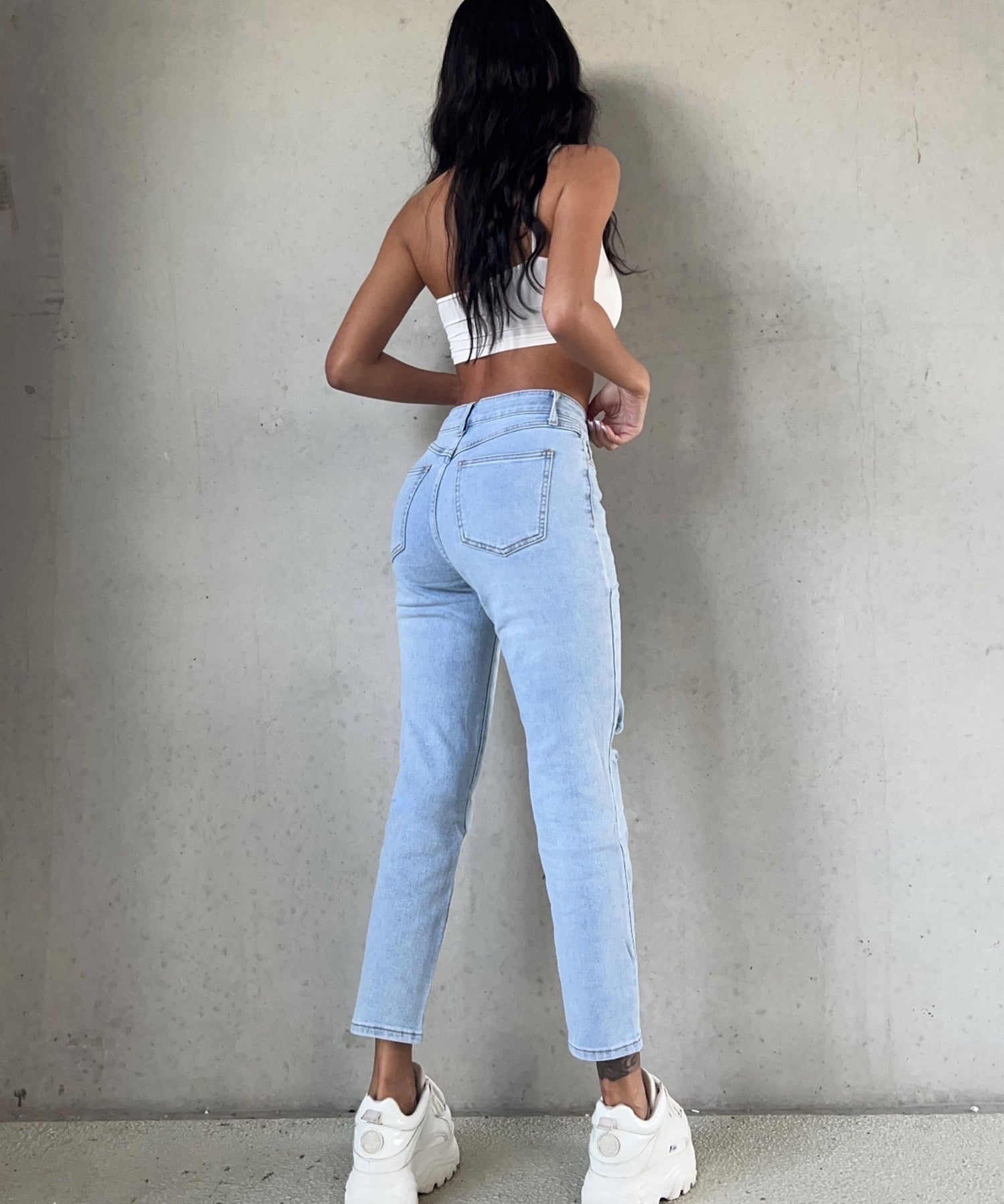 Fällt normal aus und enthält viel Stretch. Daher ist sie super bequem. Model ist 1,70m.