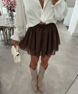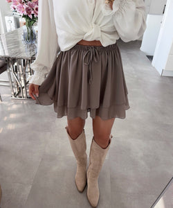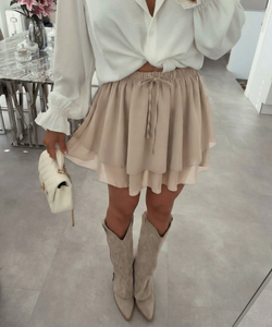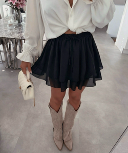 Hosenrock. Mit dehnbarem Gummibund. Kann mithilfe der Schnüre größenindividuell verstellt werden. Einheitsgröße passt XS-L. Model ist 1.65m groß.