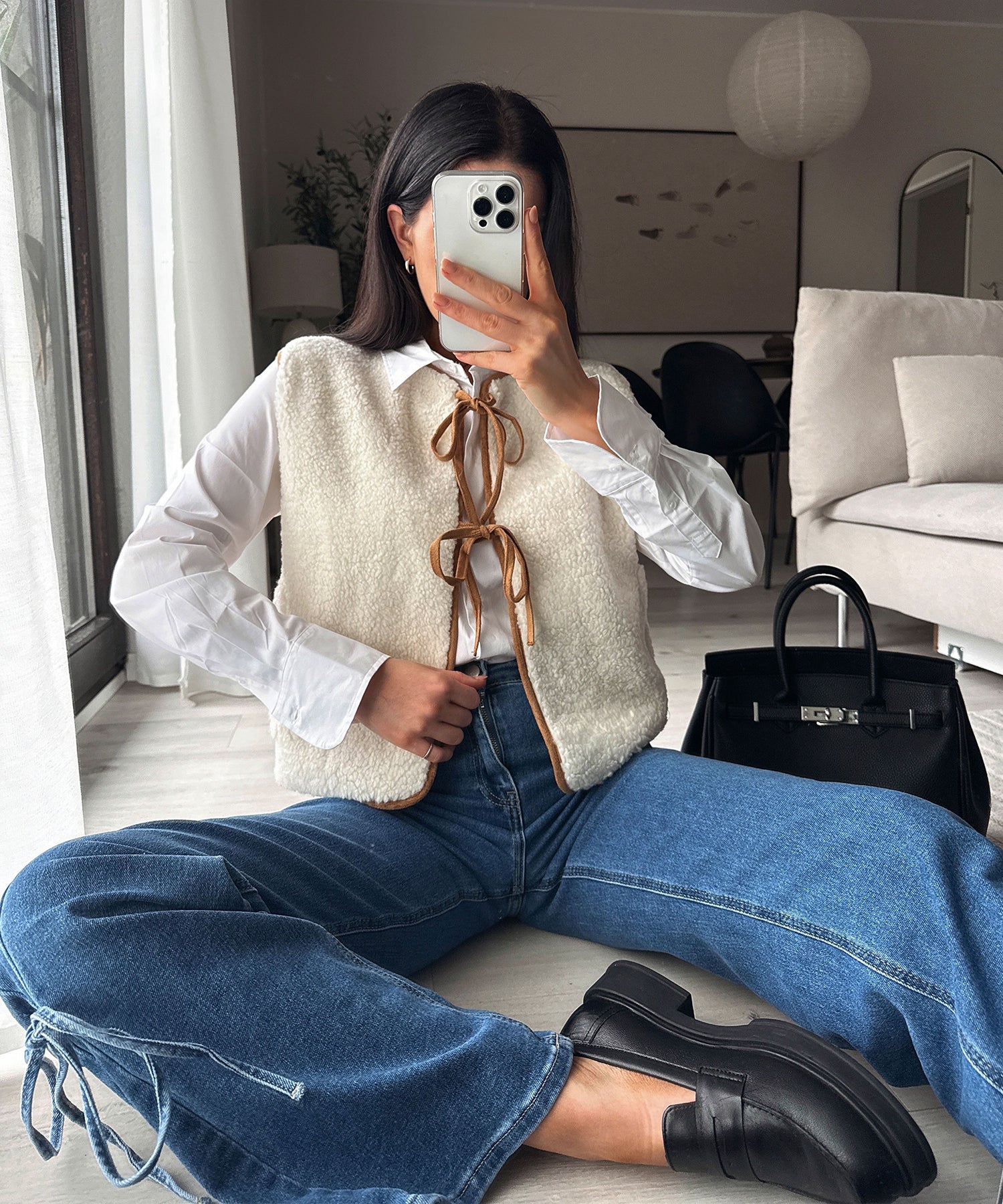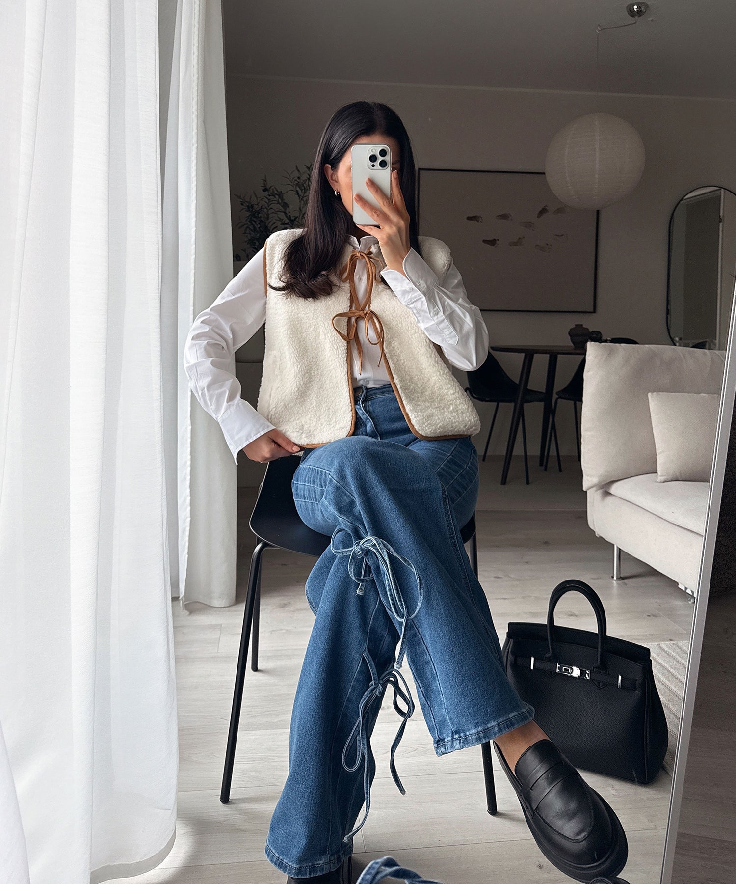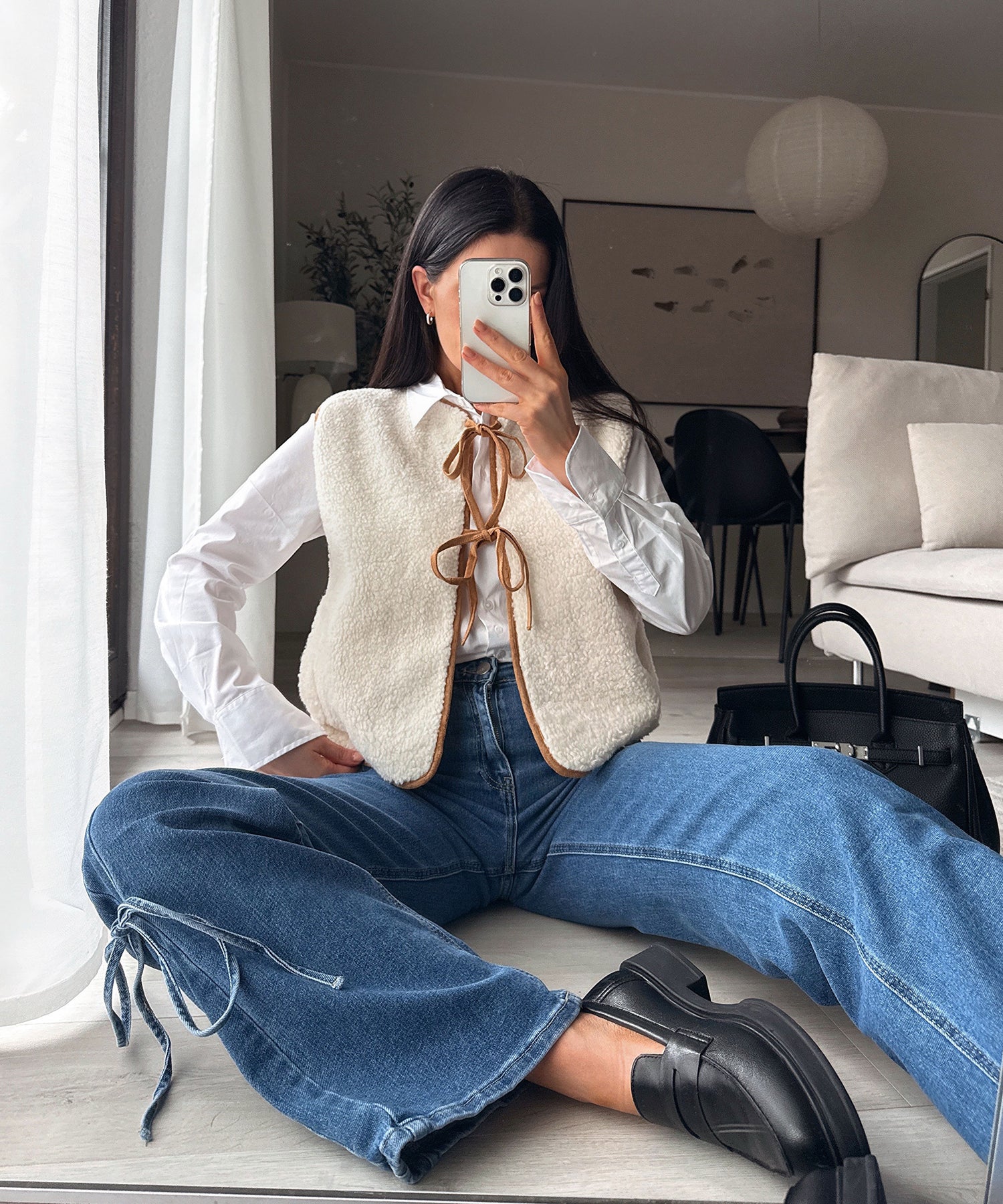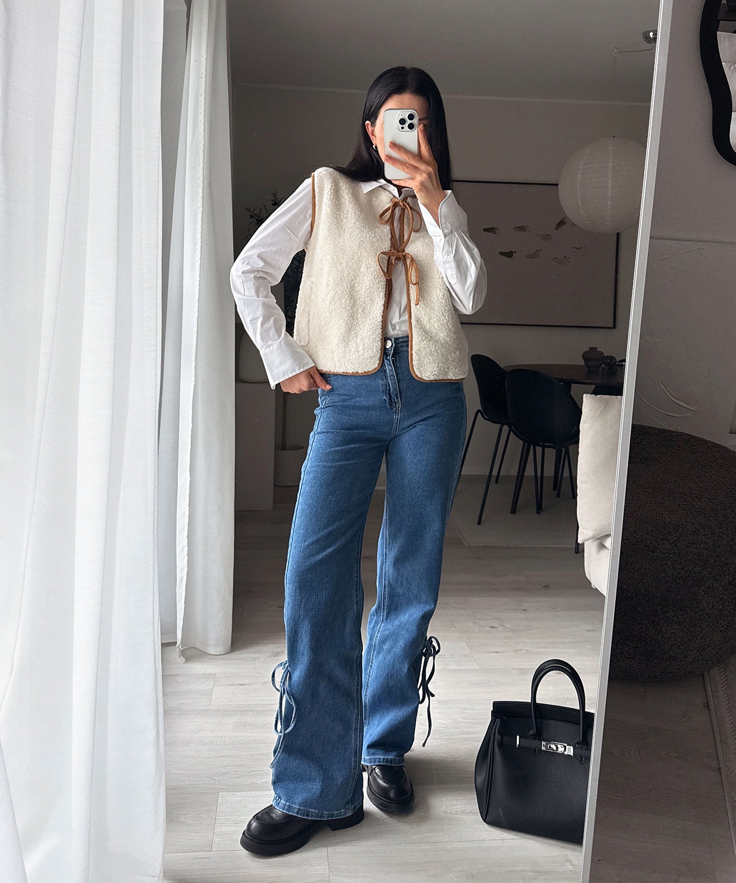 Stretch Wide Leg Jeans Mira Schleife Dunkelblau Ladypolitan ♡