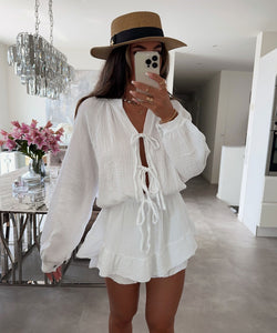 Schöner Musselin Einteiler aus 100% Baumwolle mit integrierter Hose und dehnbarem Gummibund. Einheitsgröße passt den Größen XS-L. Model eins ist 1.69m groß. Model zwei ist 1.65m.