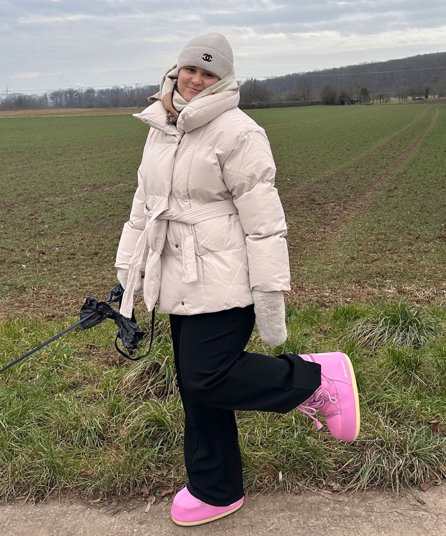 Jacket keeps you very warm. Model one is 1.65m and wears size S/M. Model two is 1.69m and wears size S/M. Since the jacket is fitted with a belt, sizes SM and ML don't have a big difference. The jacket suits both short and tall women very well. Can be closed with snap fasteners so that no wind/cold can get through. Spacious pockets that can be closed with a zipper.
