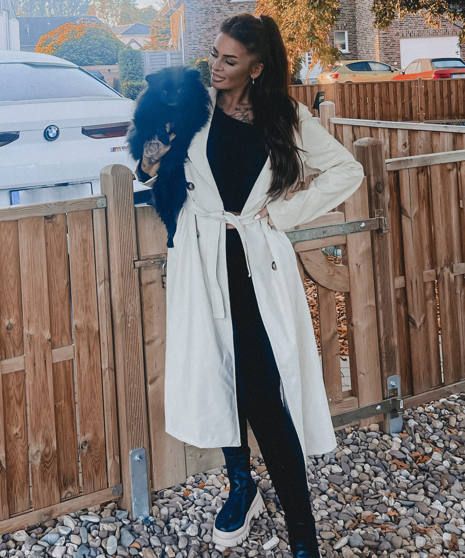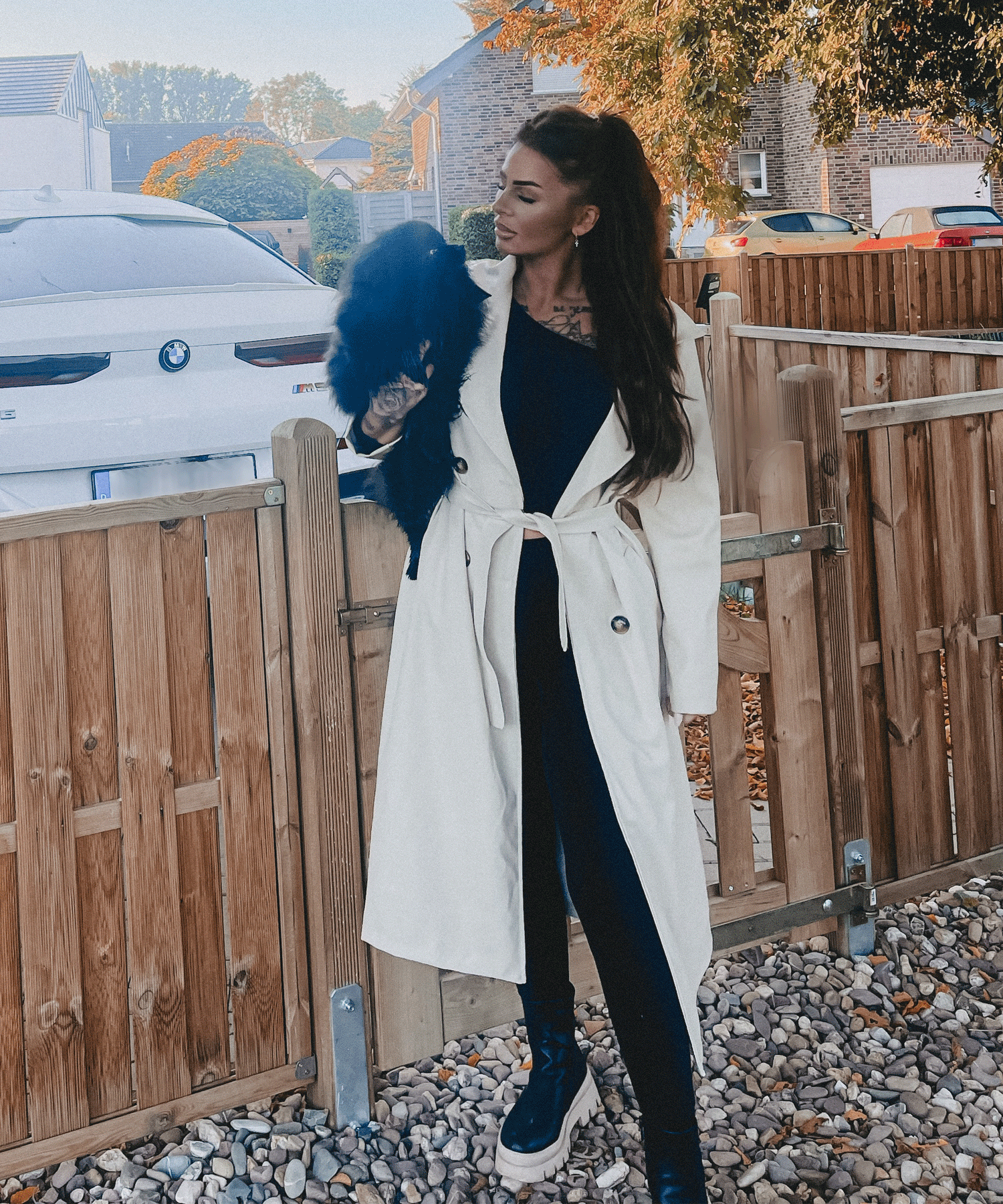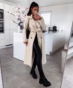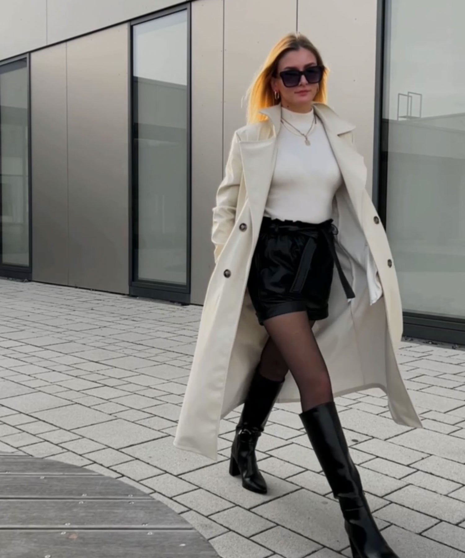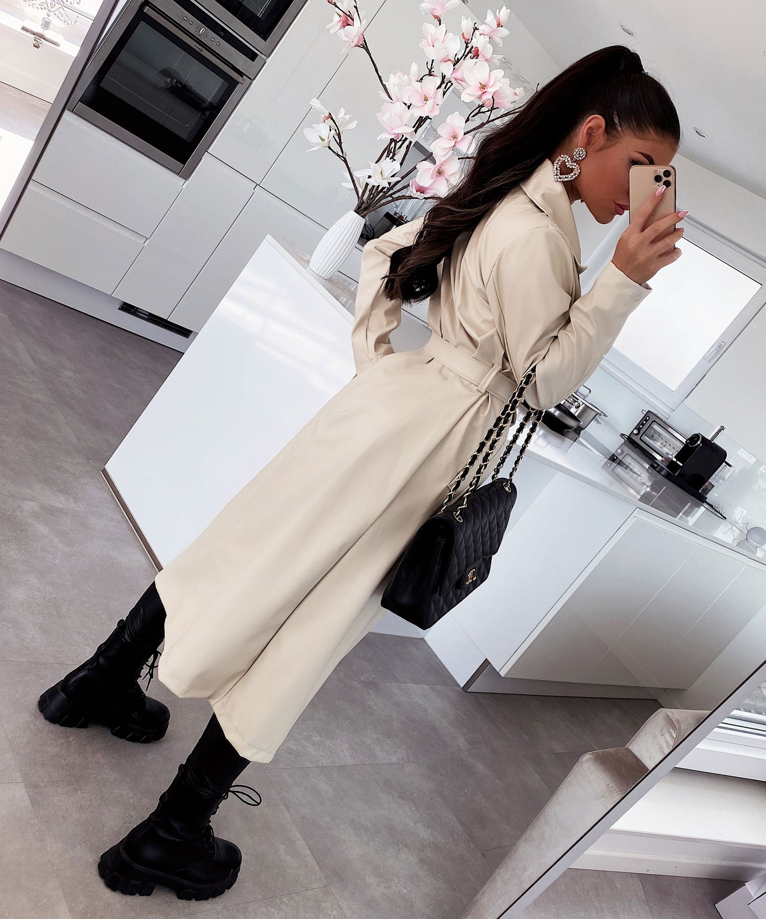 Manteau léger en similicuir parfait pour l'automne. Taille unique pour XS-XL. Le mannequin mesure 1,65 m et porte une taille classique S (36).