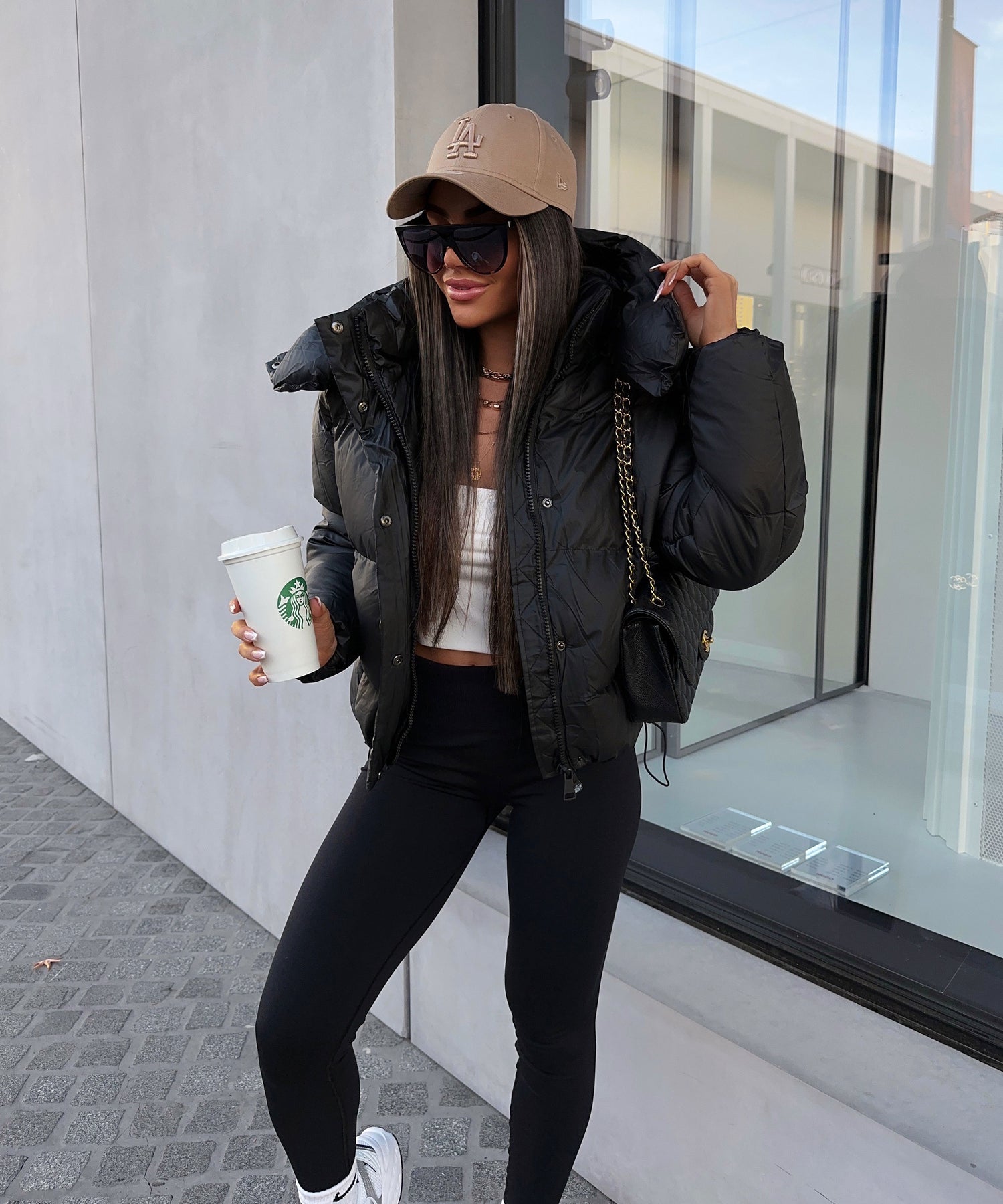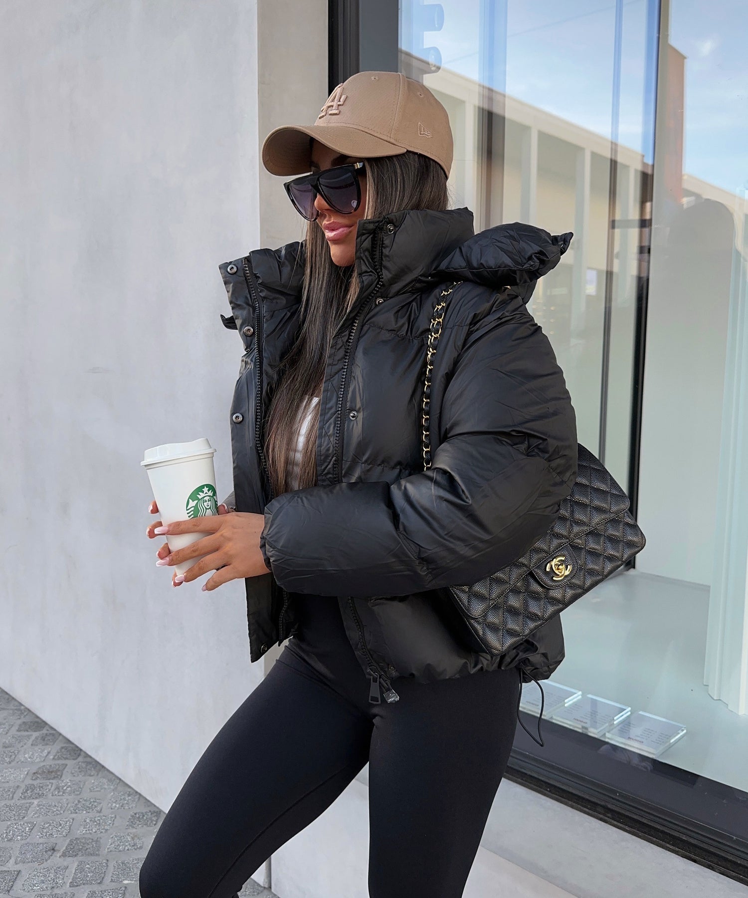 Super schöne Pufferjacke mit abnehmbarer Kapuze. Leichtes Ledermaterial daher super zum reinigen. Hält besonders warm und eignet sich daher perfekt für die kälteren Tage. Model eins ist 1,65m groß und trägt Größe M. Fällt normal aus.