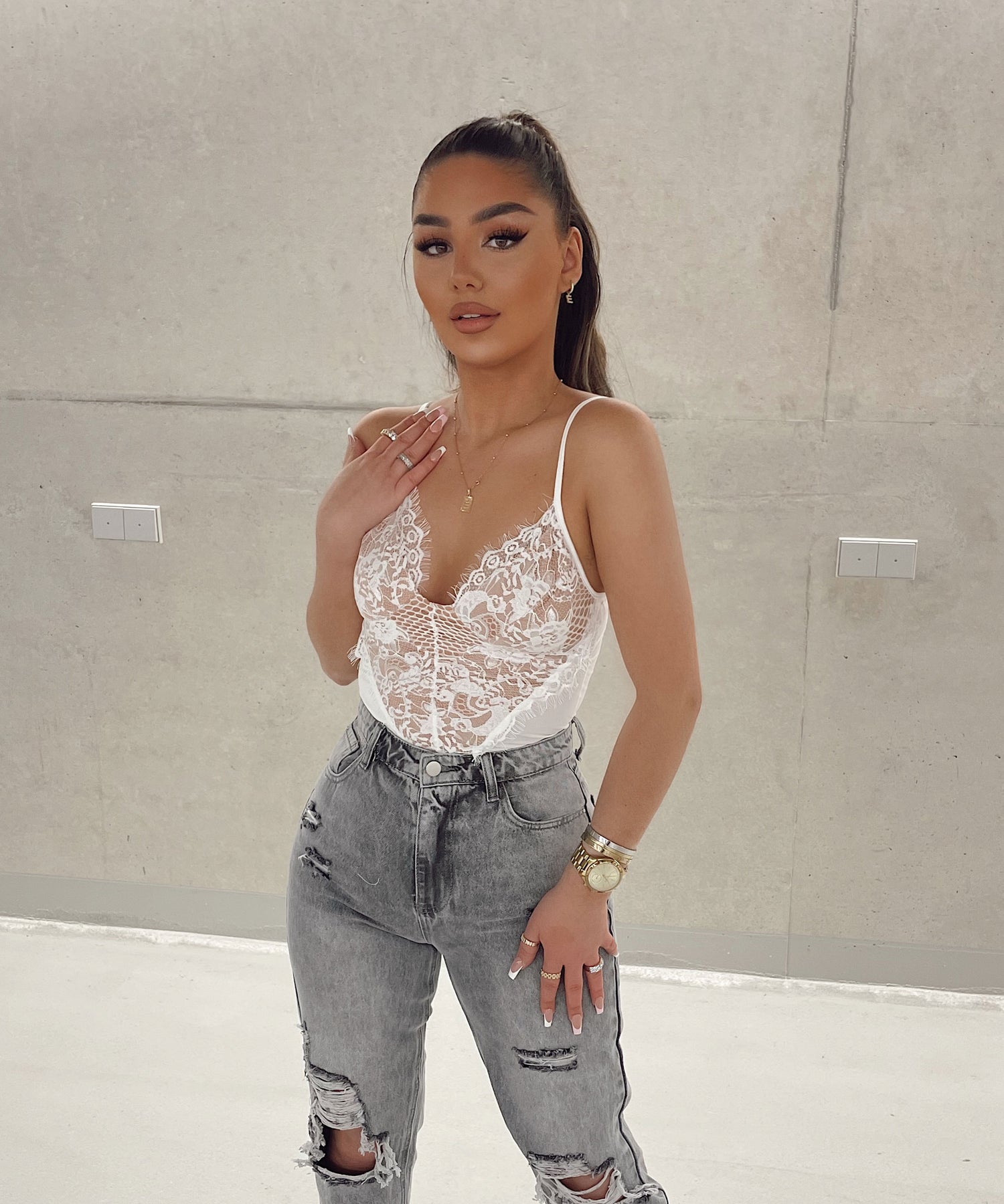 Fits normal. The fabric is very stretchy. The model is 1.65m tall and is wearing a size S (36).