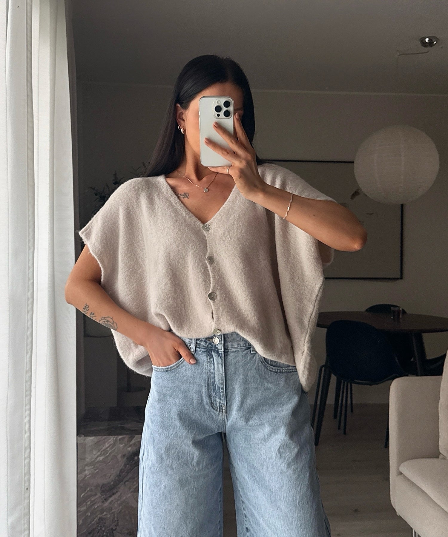Kurzarm Cardigan Liz Beige