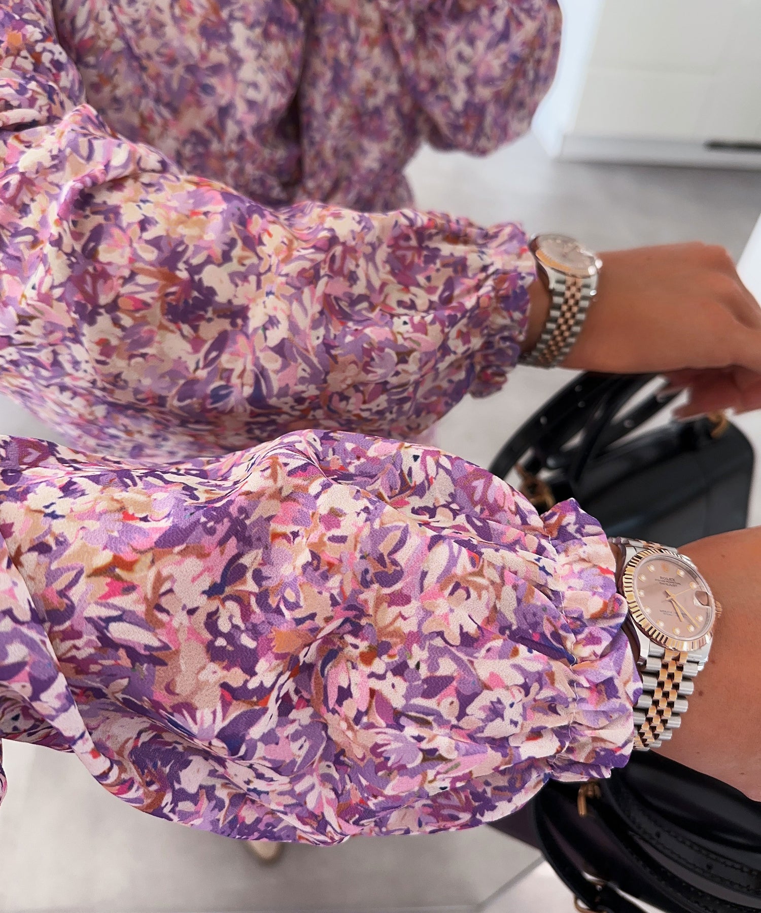 Super schönes Maxi Kleid mit Blumenmuster und Bindegürtel zum Taillieren. Model ist 1,65m groß. Gesamtlänge: ca. 127cm