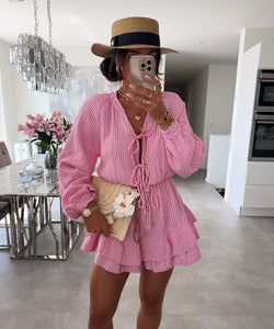 Musselin Jumpsuit Juan Schleife Streifen Rosa